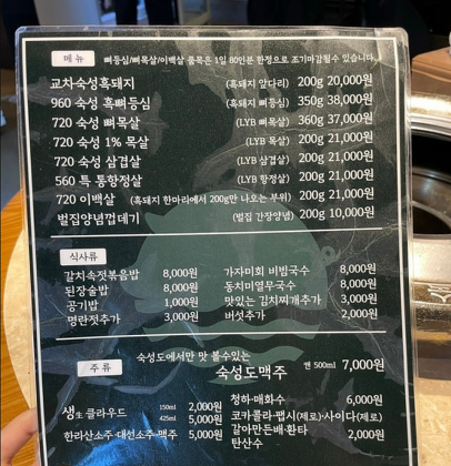 메뉴판에도 보시다시피 뼈등심/뼈목살/이백살은 80인분 한정으로 조기마감될 수 있다고 되어있습니다.