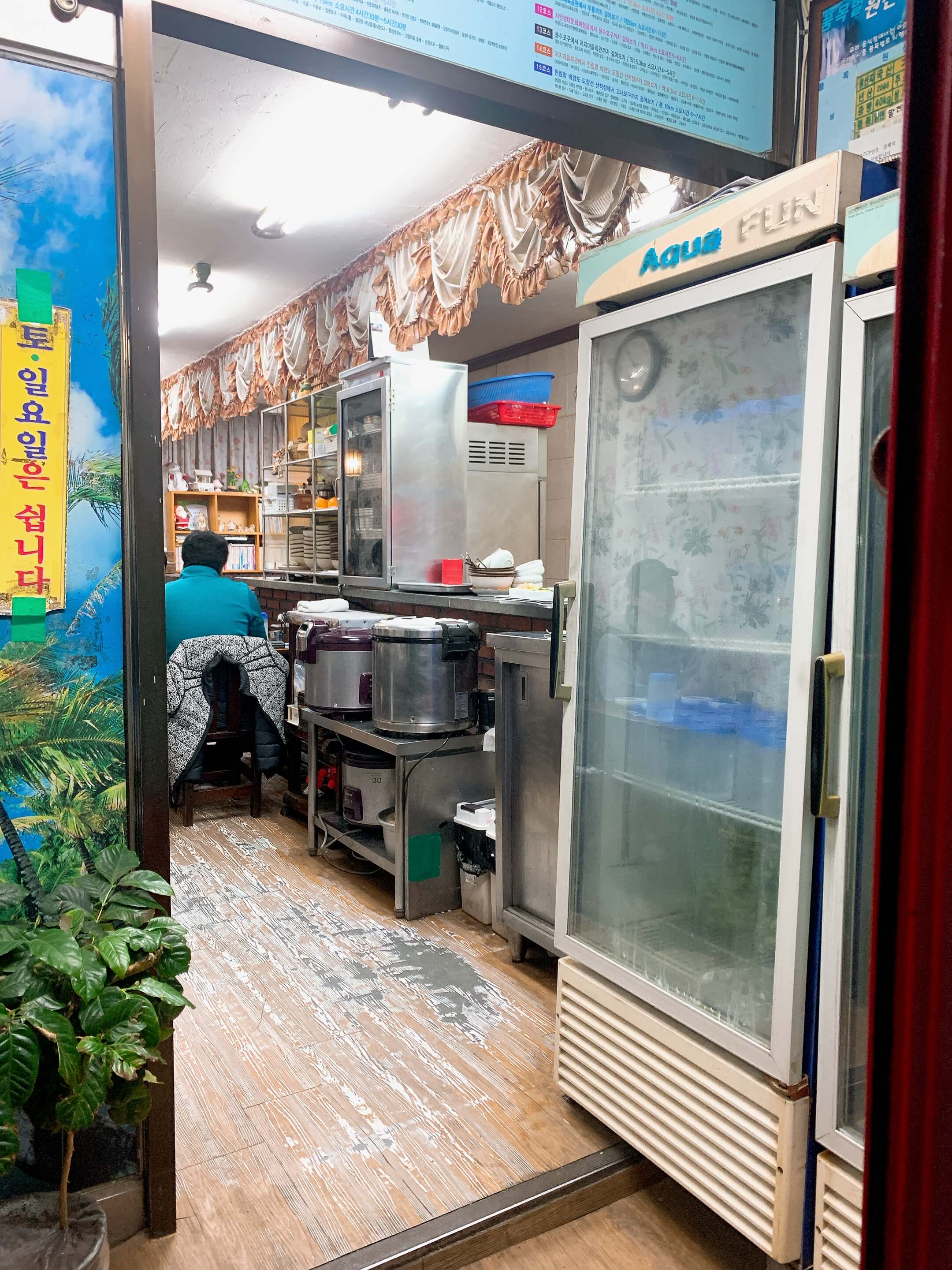 주방이 바로 오른쪽에 있고 왼쪽으로 테이블이 있고 안쪽으로 바닥자리가 나옵니다.