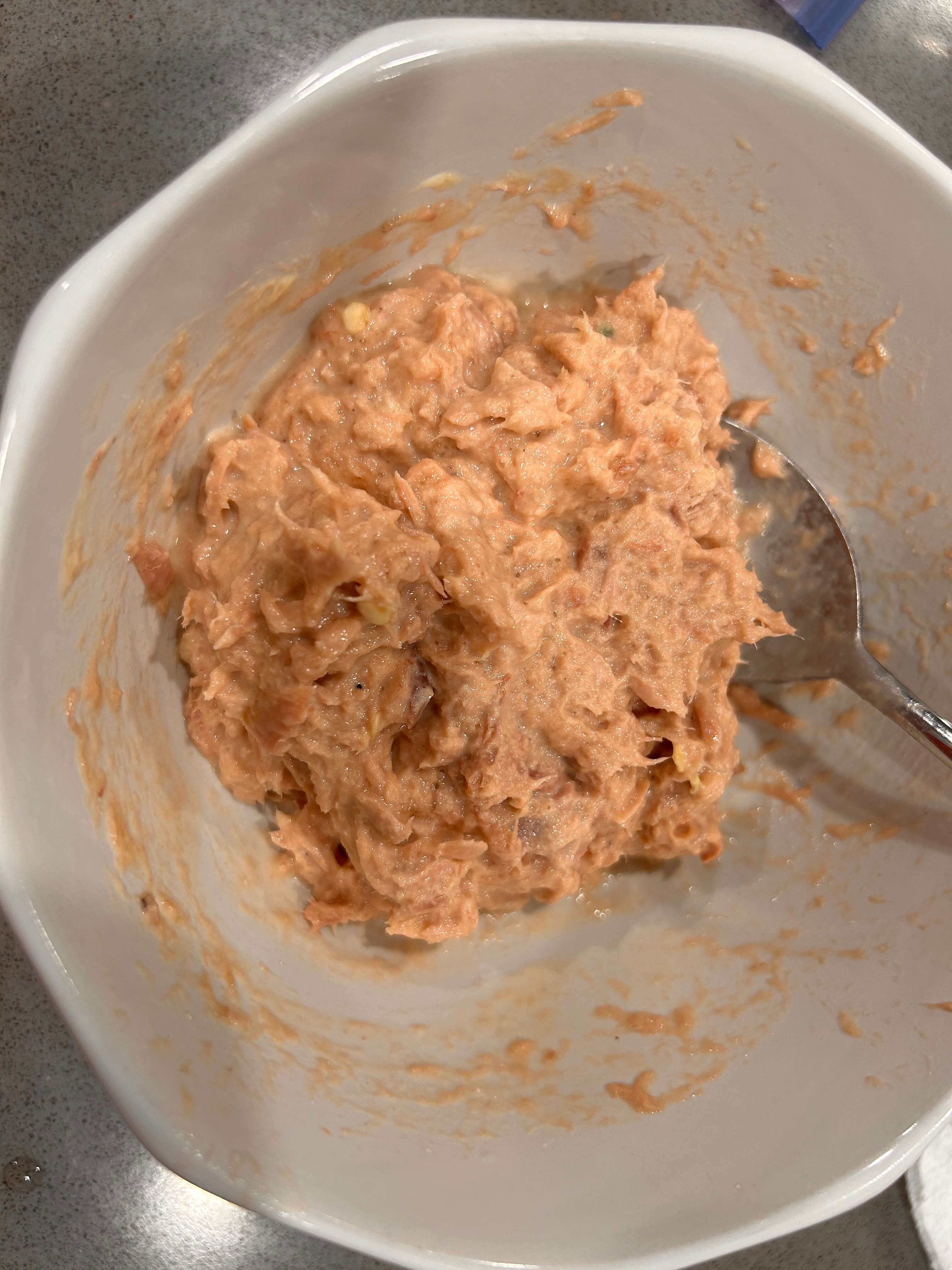 3. 기름을 제거한 참지캔 하나를 볼에 넣어줍니다.