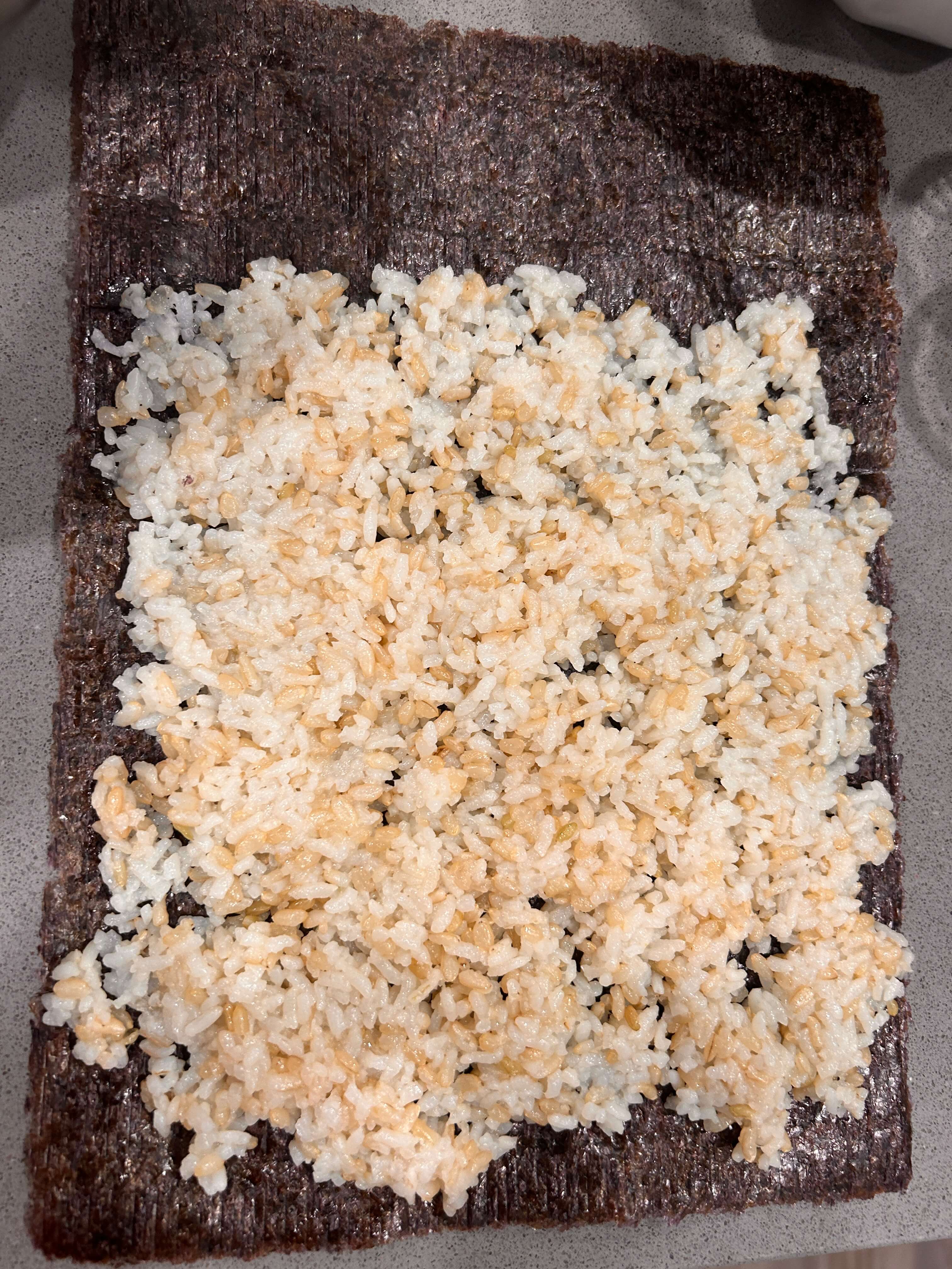 5. 밥은 참기름, 소금으로 간을 해 준비해 줍니다.