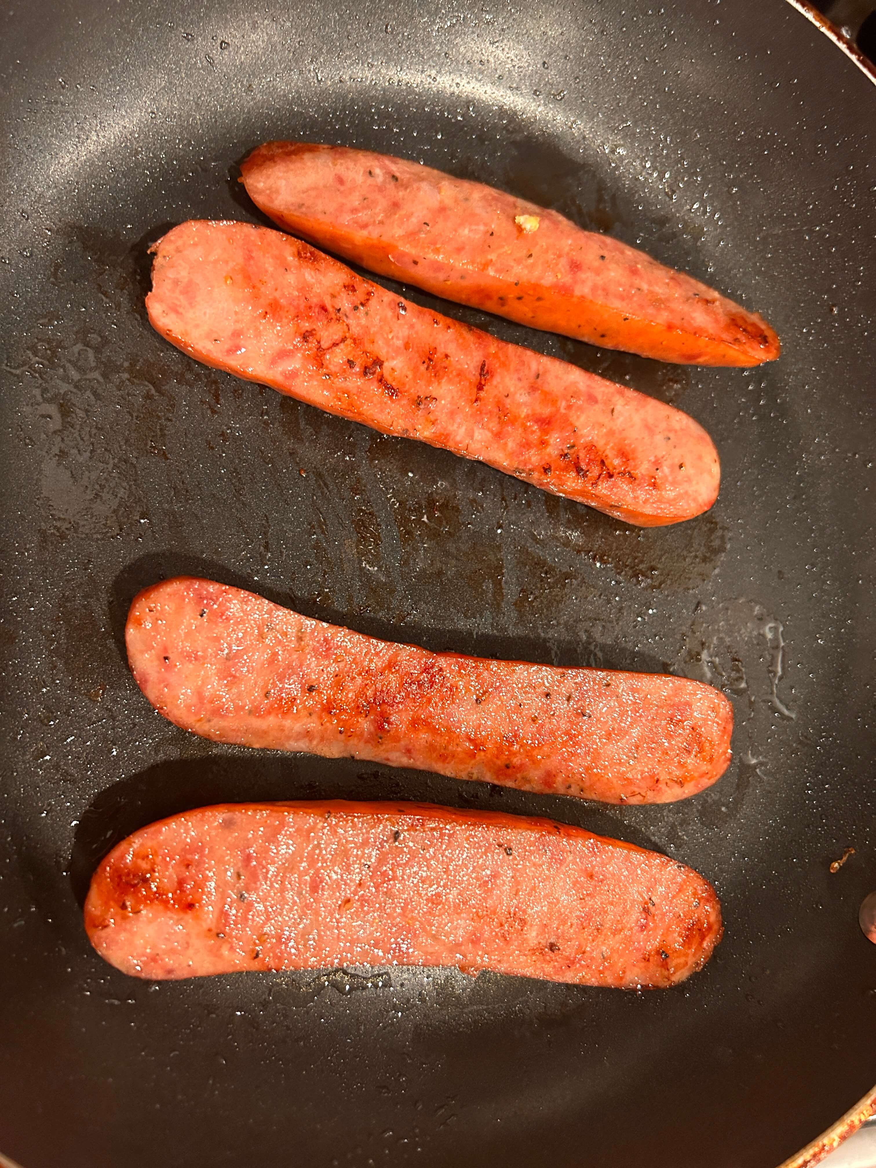 1. 계란과 소시지를 구워 준비해 줍니다.