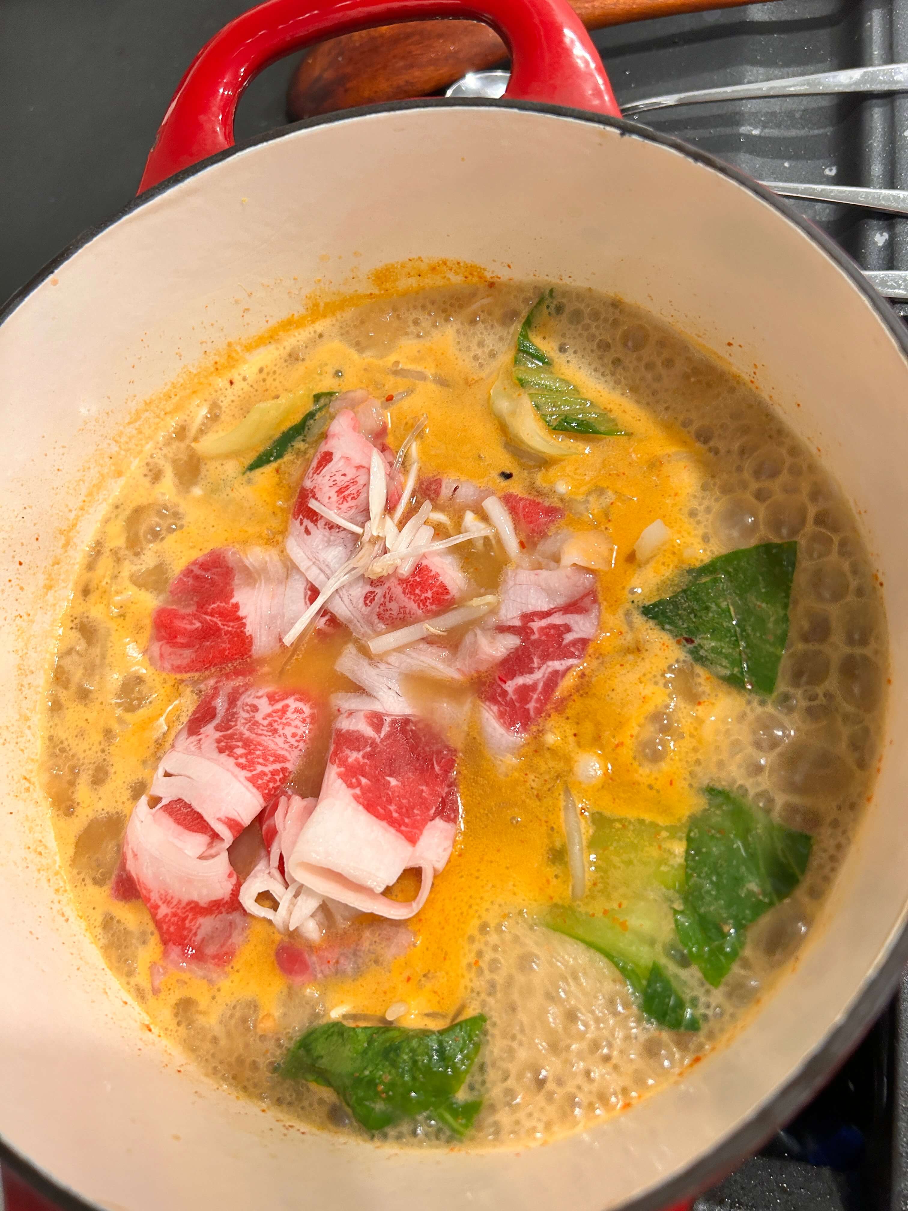 8. 우삼겹은 마지막에 넣어 고기를 익혀줍니다.