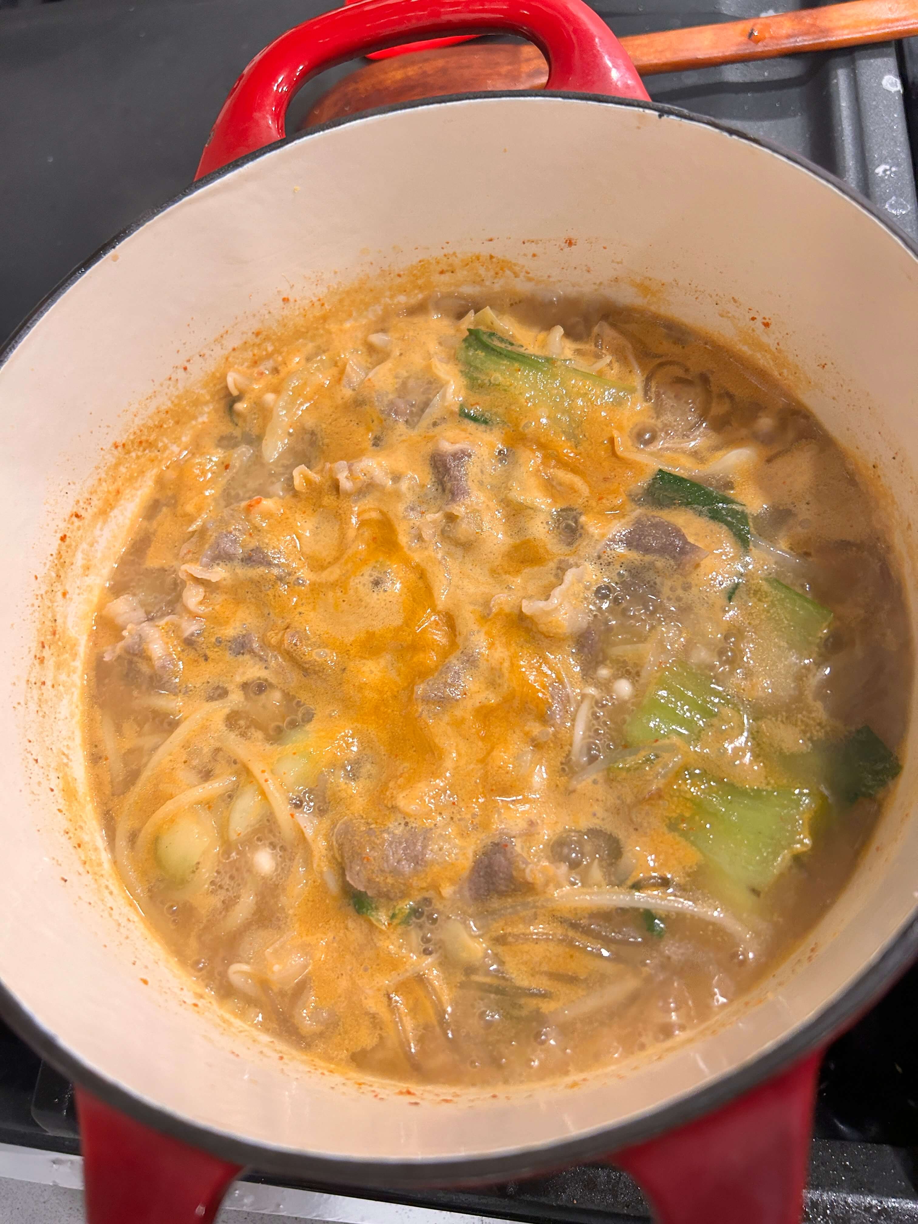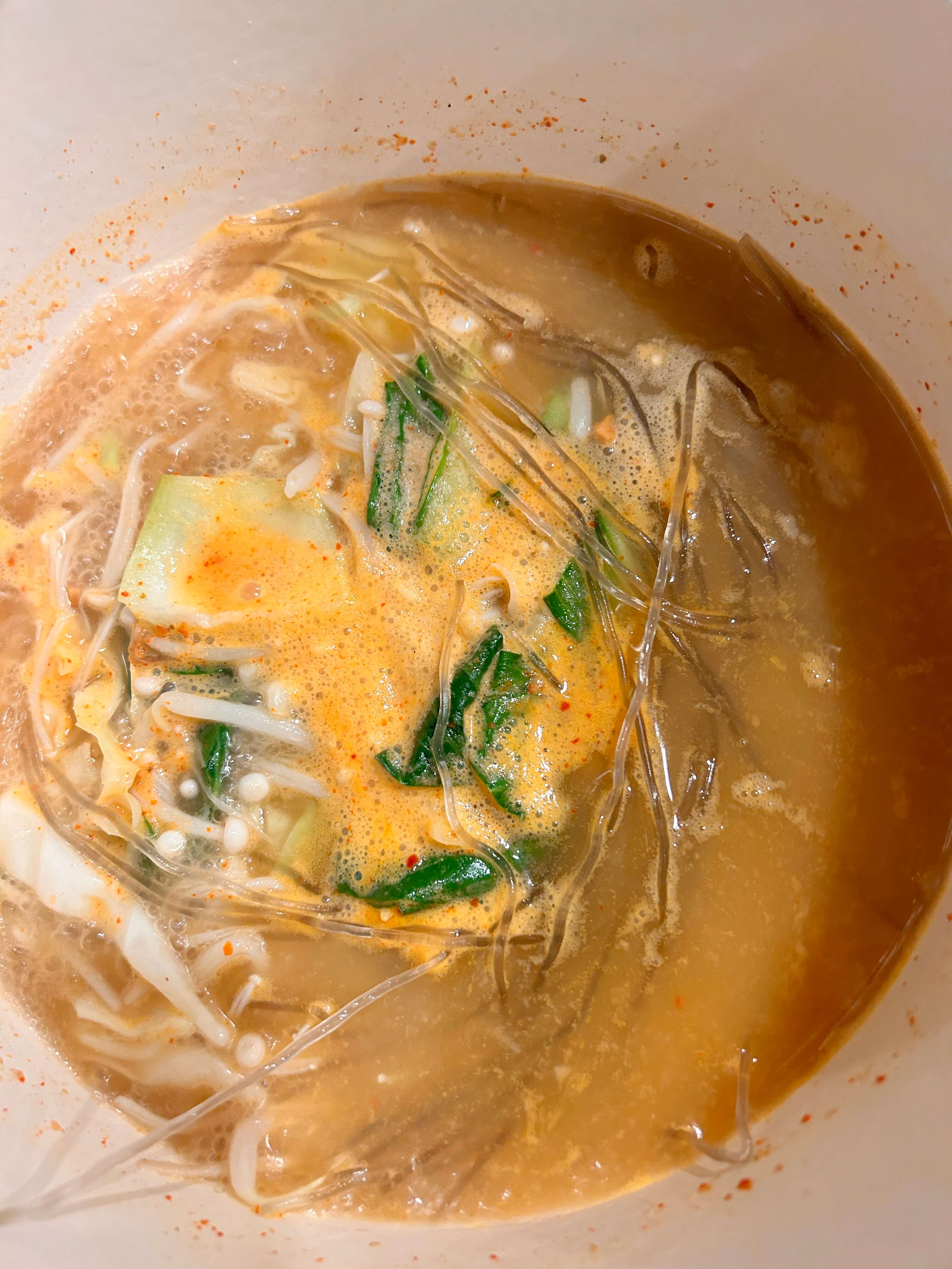 7. 당면과 옥수수면을 넣고 익을 때까지 끓여줍니다.