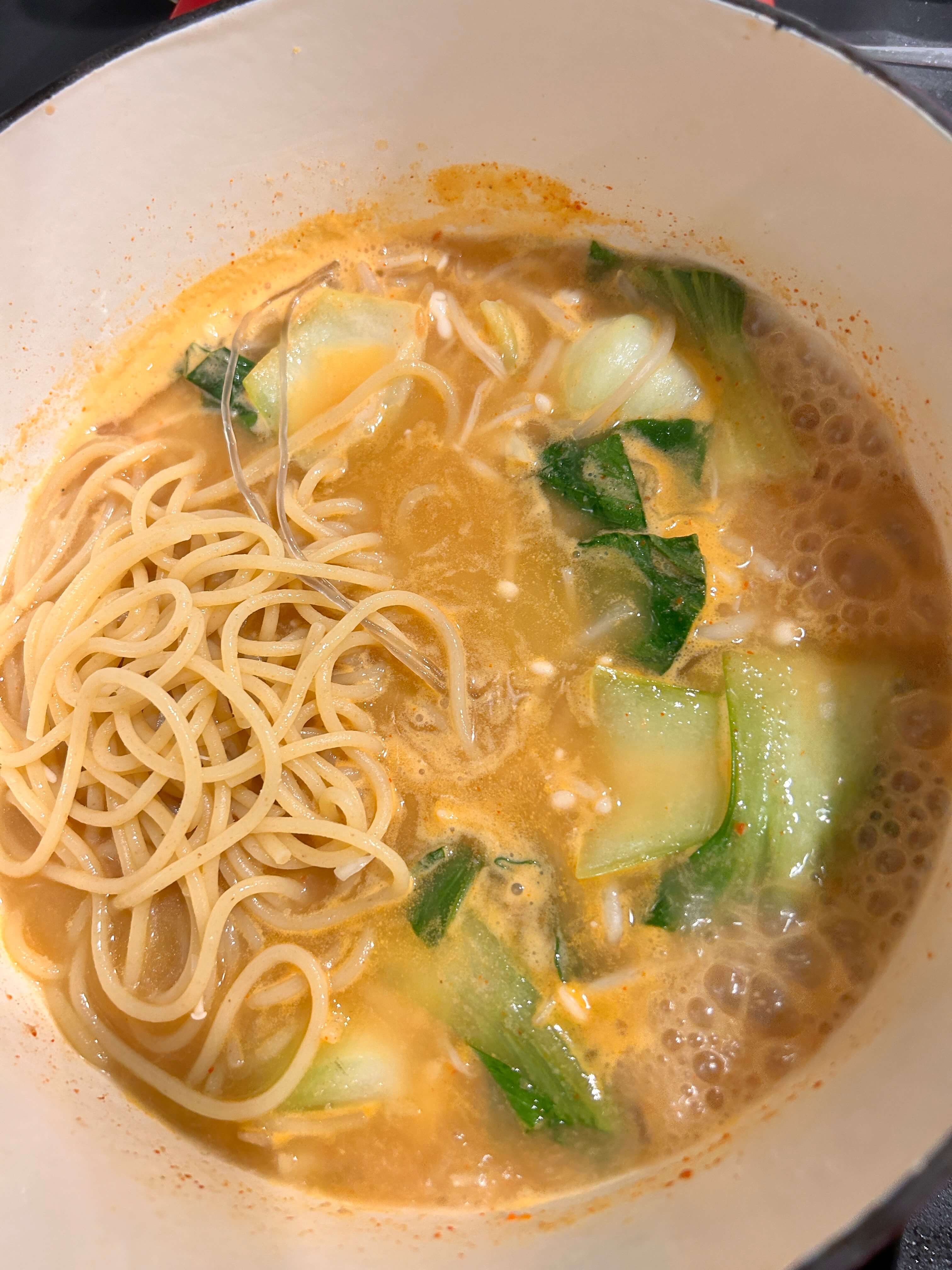 7. 당면과 옥수수면을 넣고 익을 때까지 끓여줍니다.
