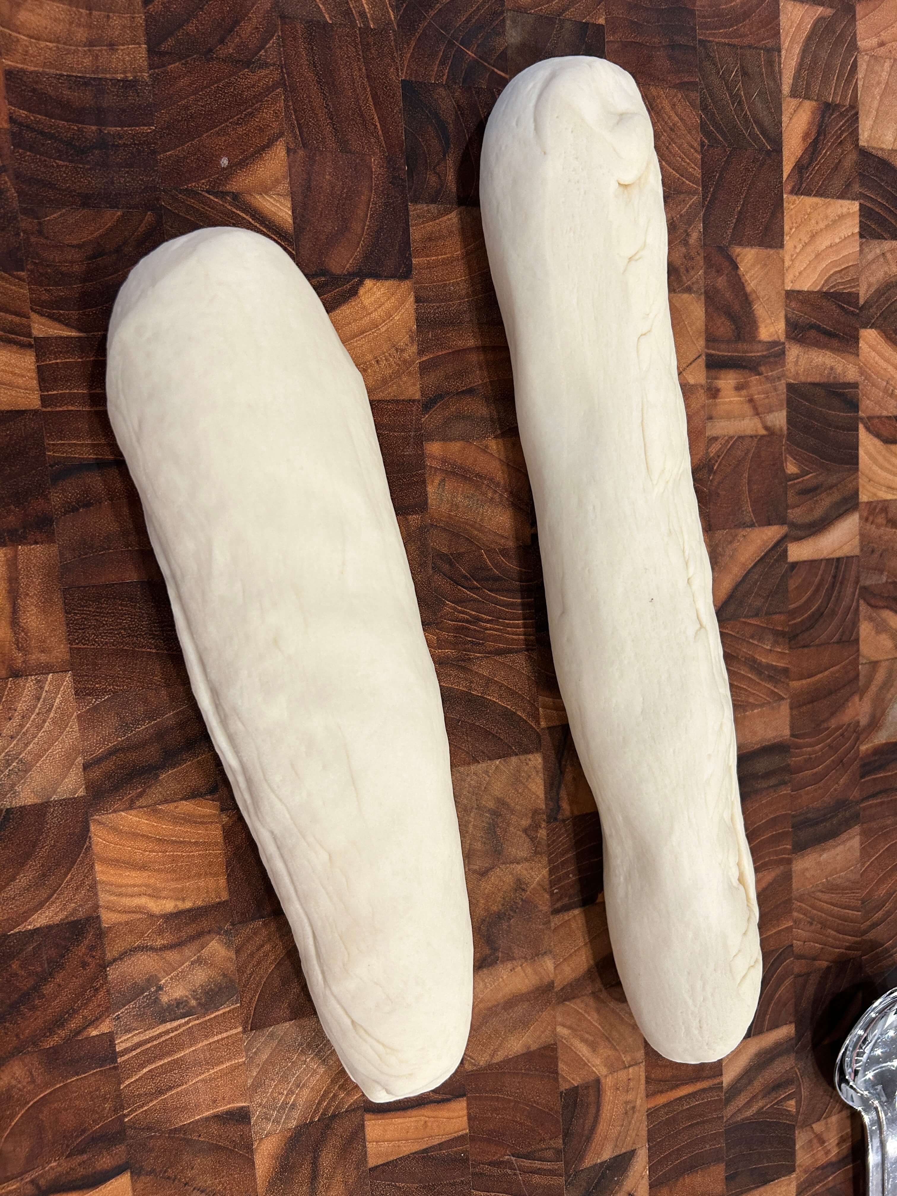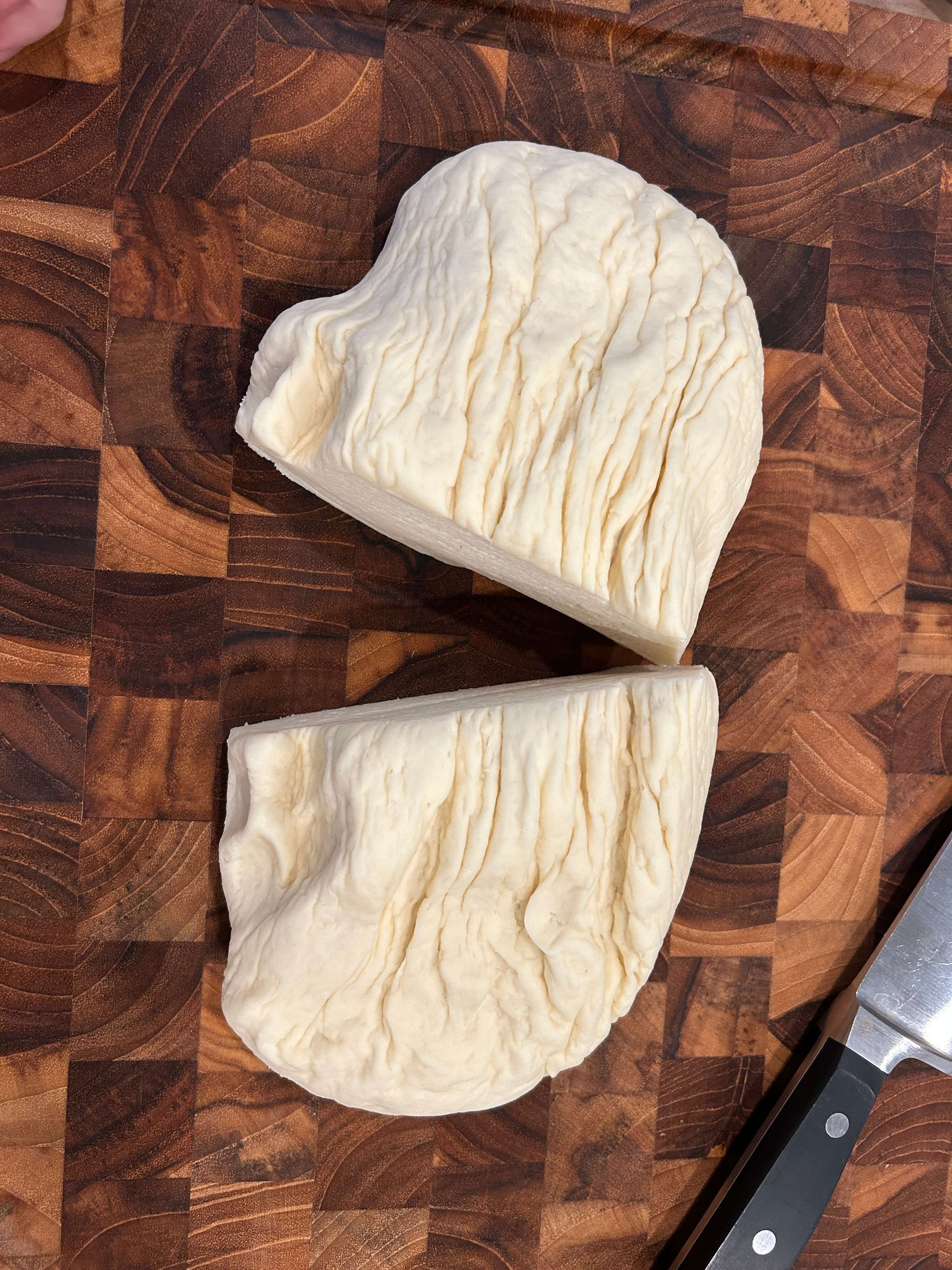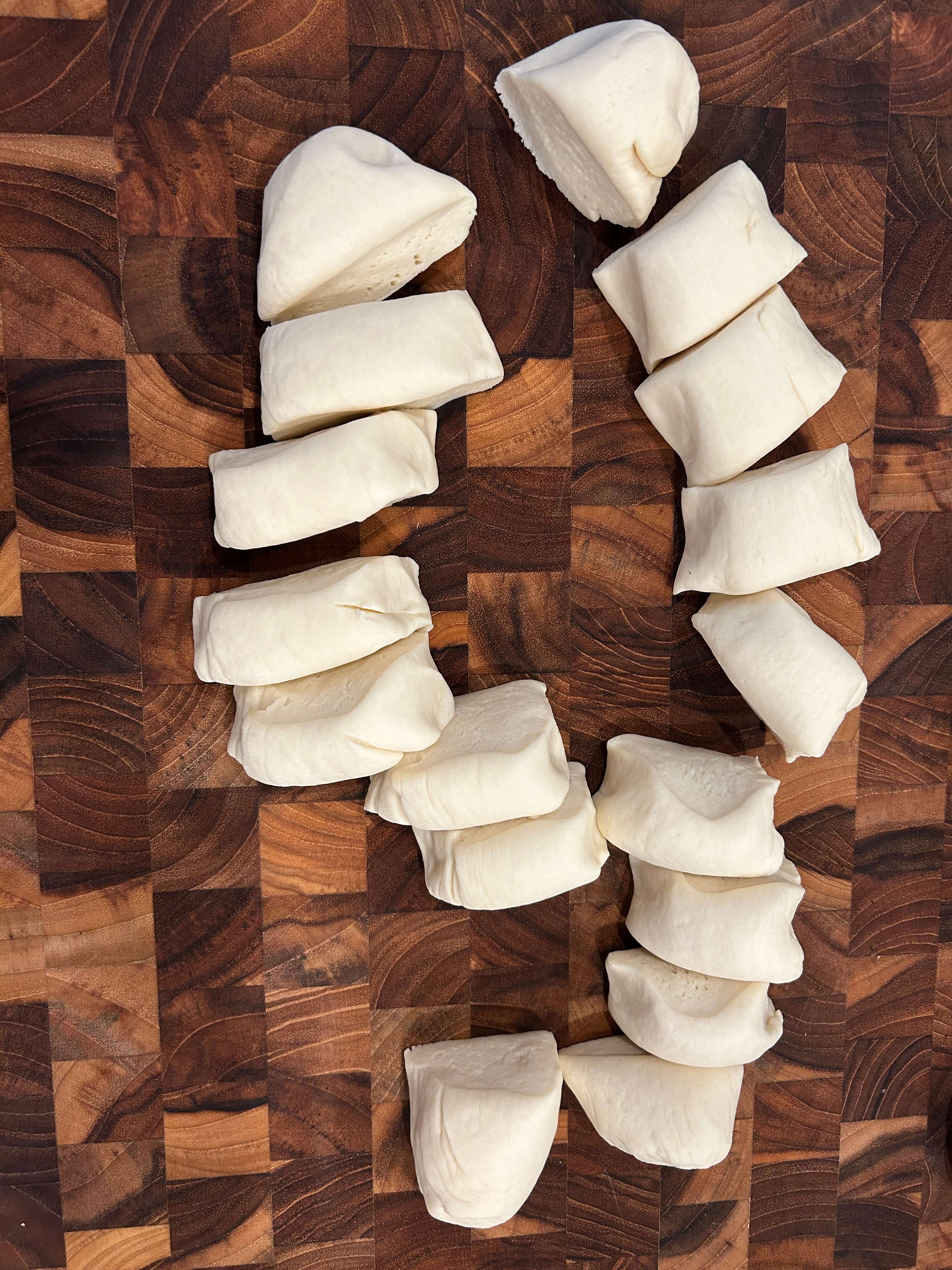 12. 도마에 반죽을 올려 이렇게 잘라 줍니다.