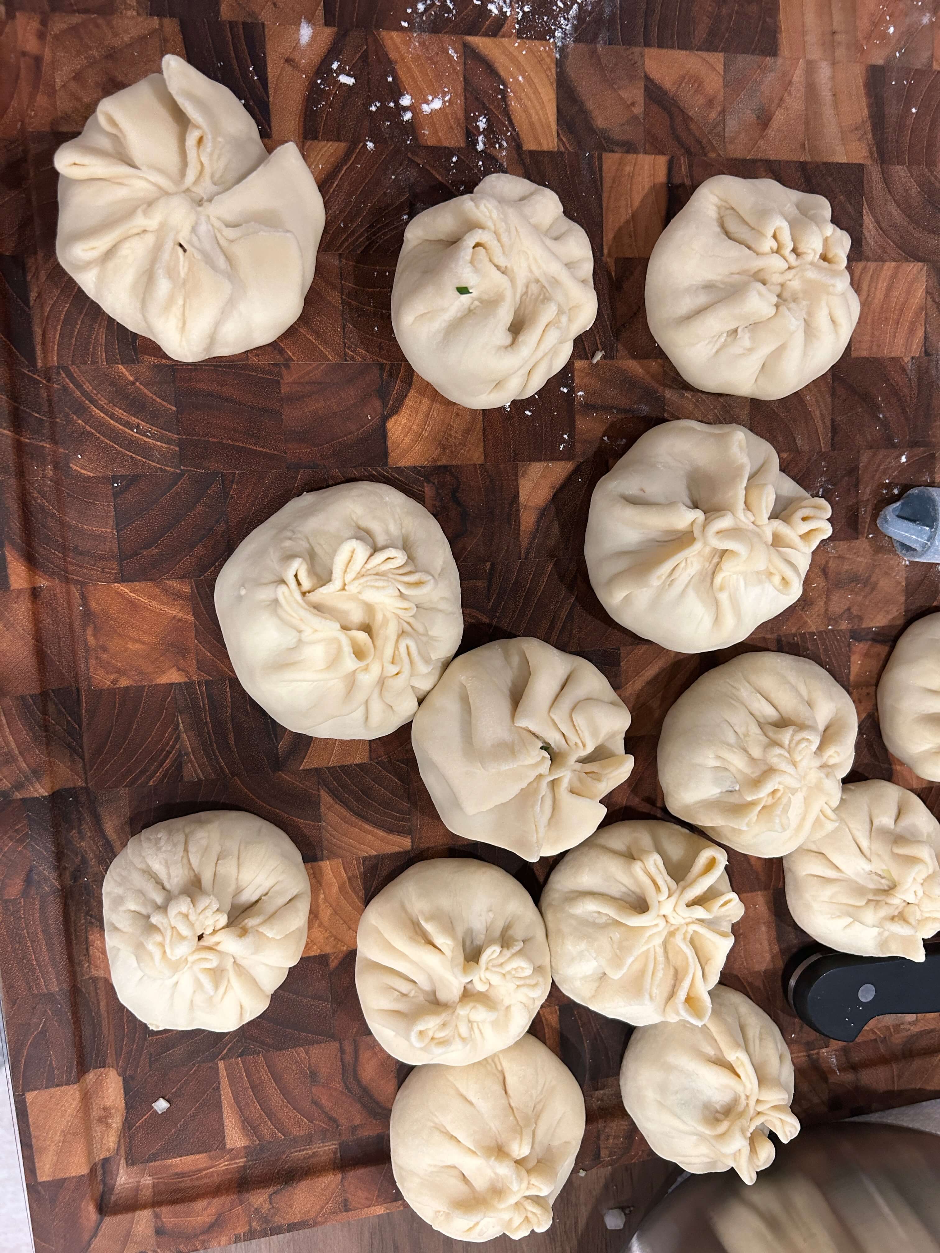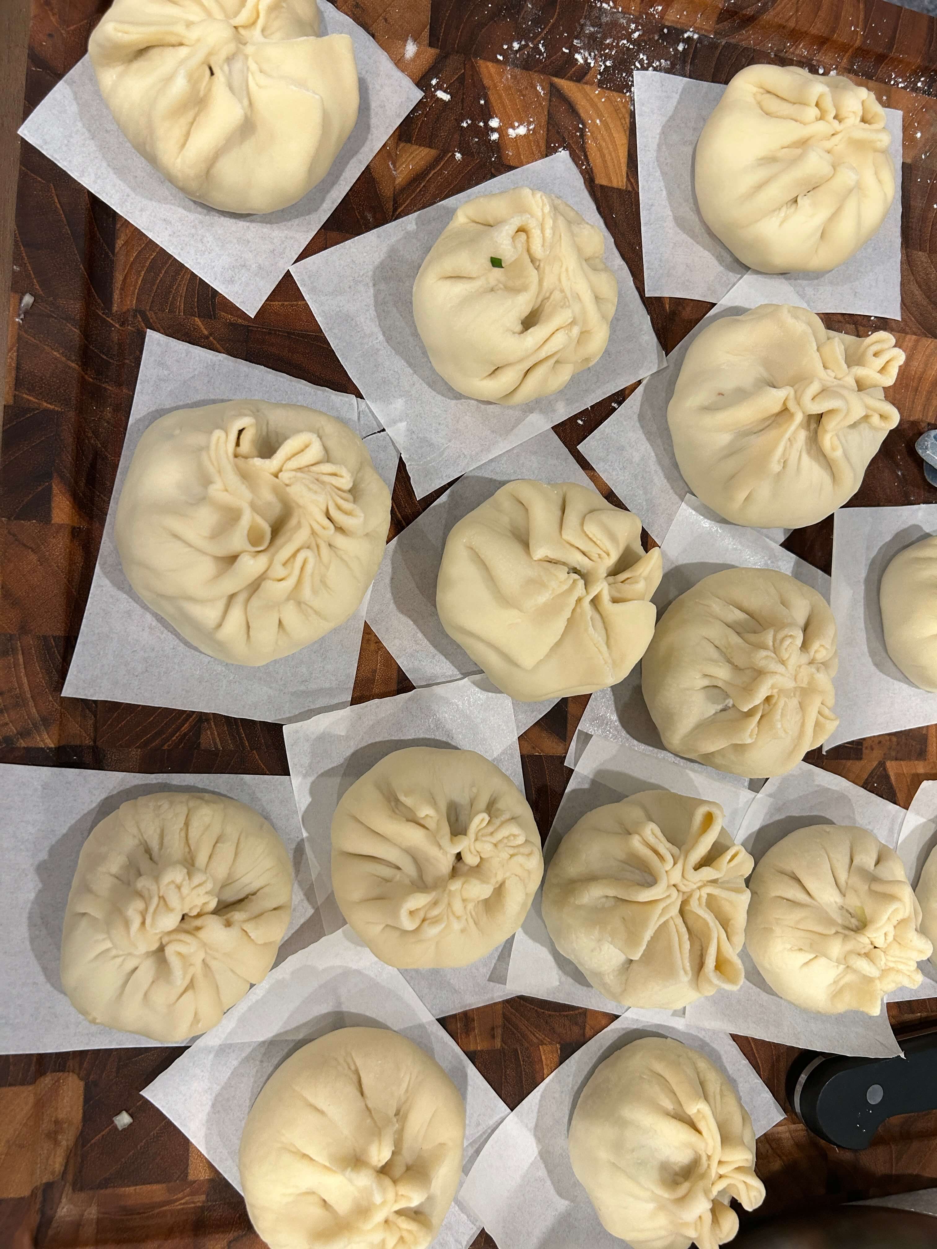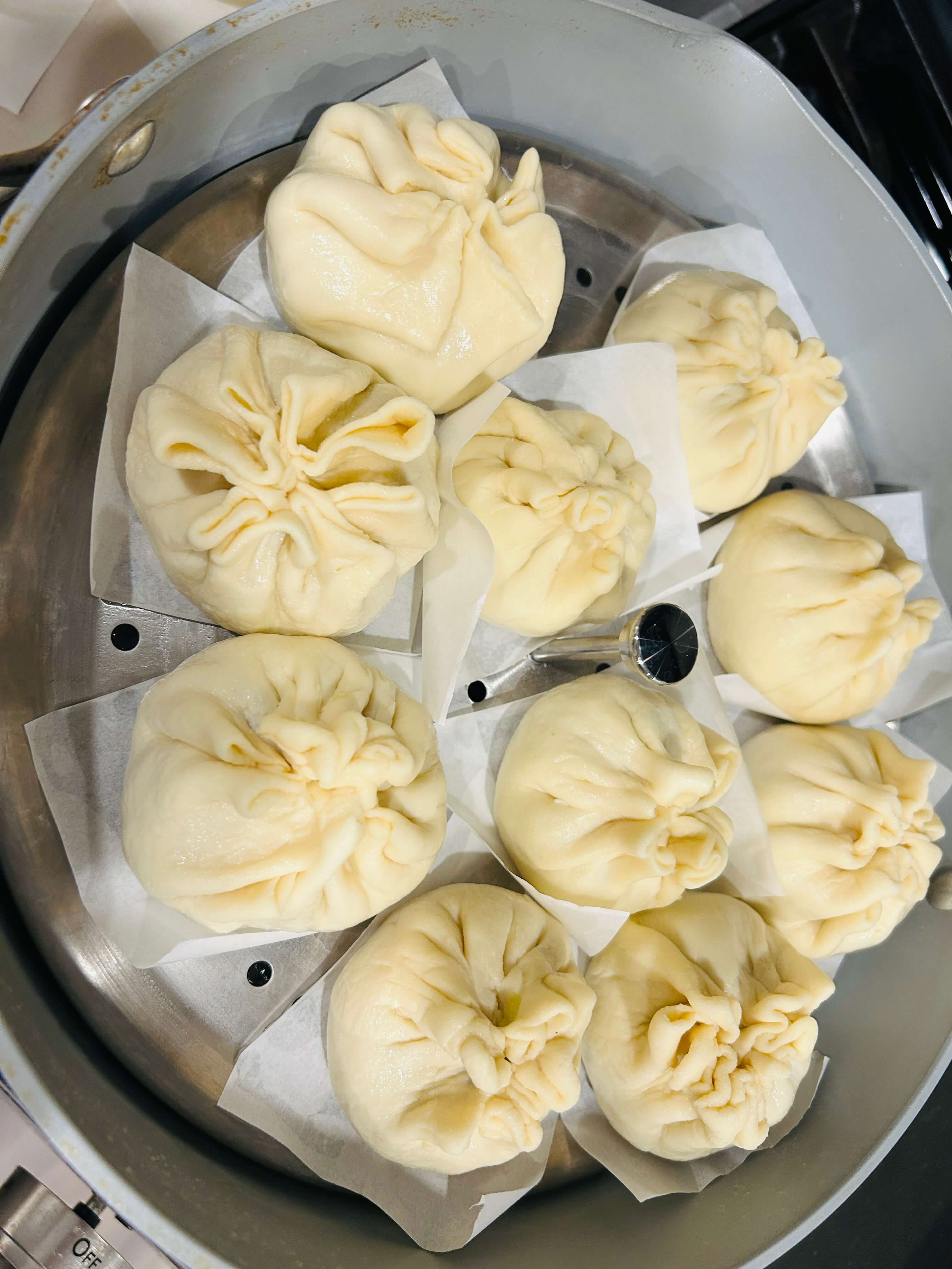 15. 다 빚은 만두는 아래 종이포일을 깔아 찔 준비를 해 줍니다.