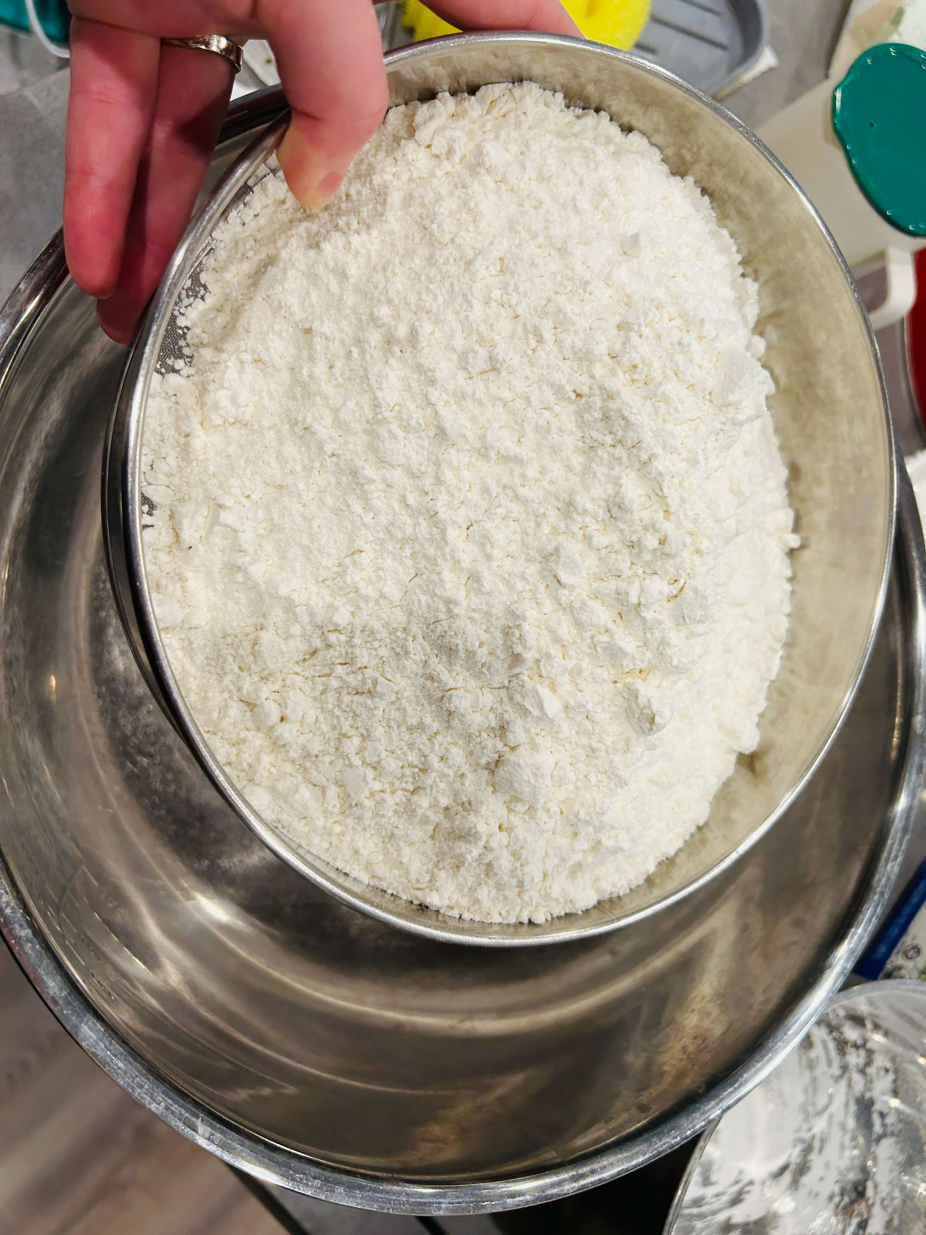8. 준비한 밀가루는 채에 처 준비해 줍니다.