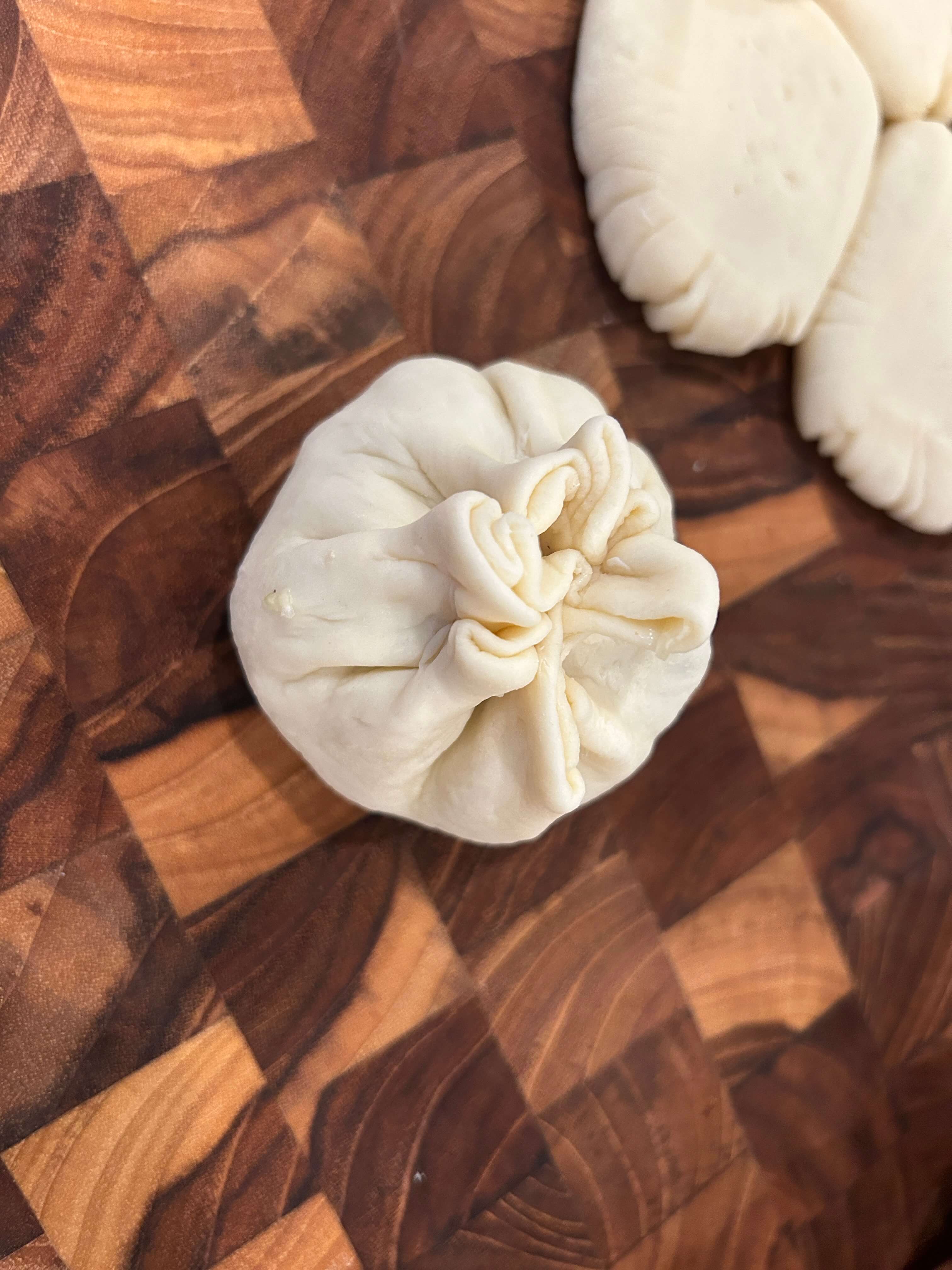 14. 만두피에 만두 속을 꽉 채워 담은 뒤 모양을 잡아줍니다.