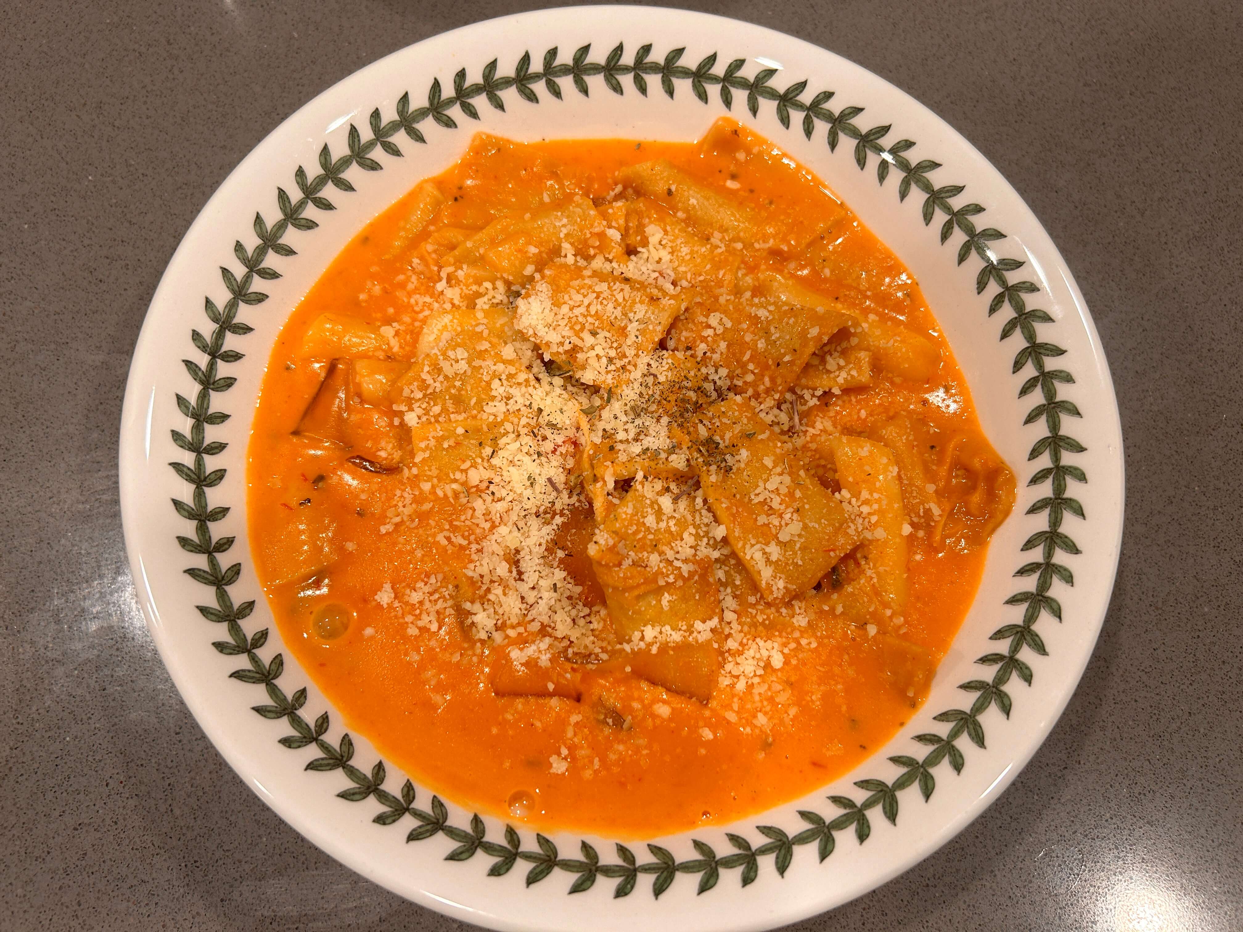10. 그릇에 담아 준 뒤, 파마산 치즈 가루를 톡톡 부려 마무리해 줍니다.
