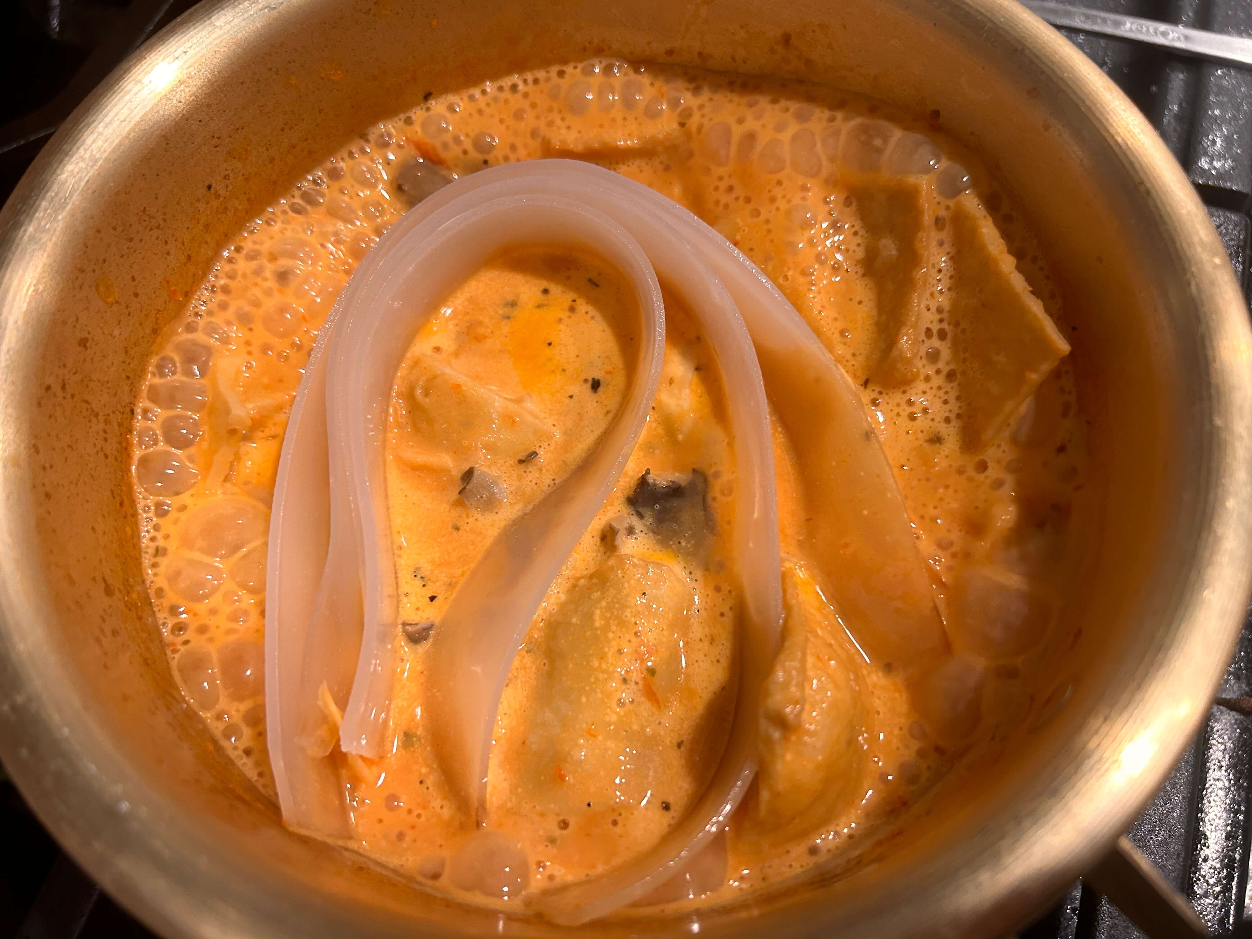 9. 불린 넙적 당면을 넣어 당면이 익을 때까지 끓여줍니다.