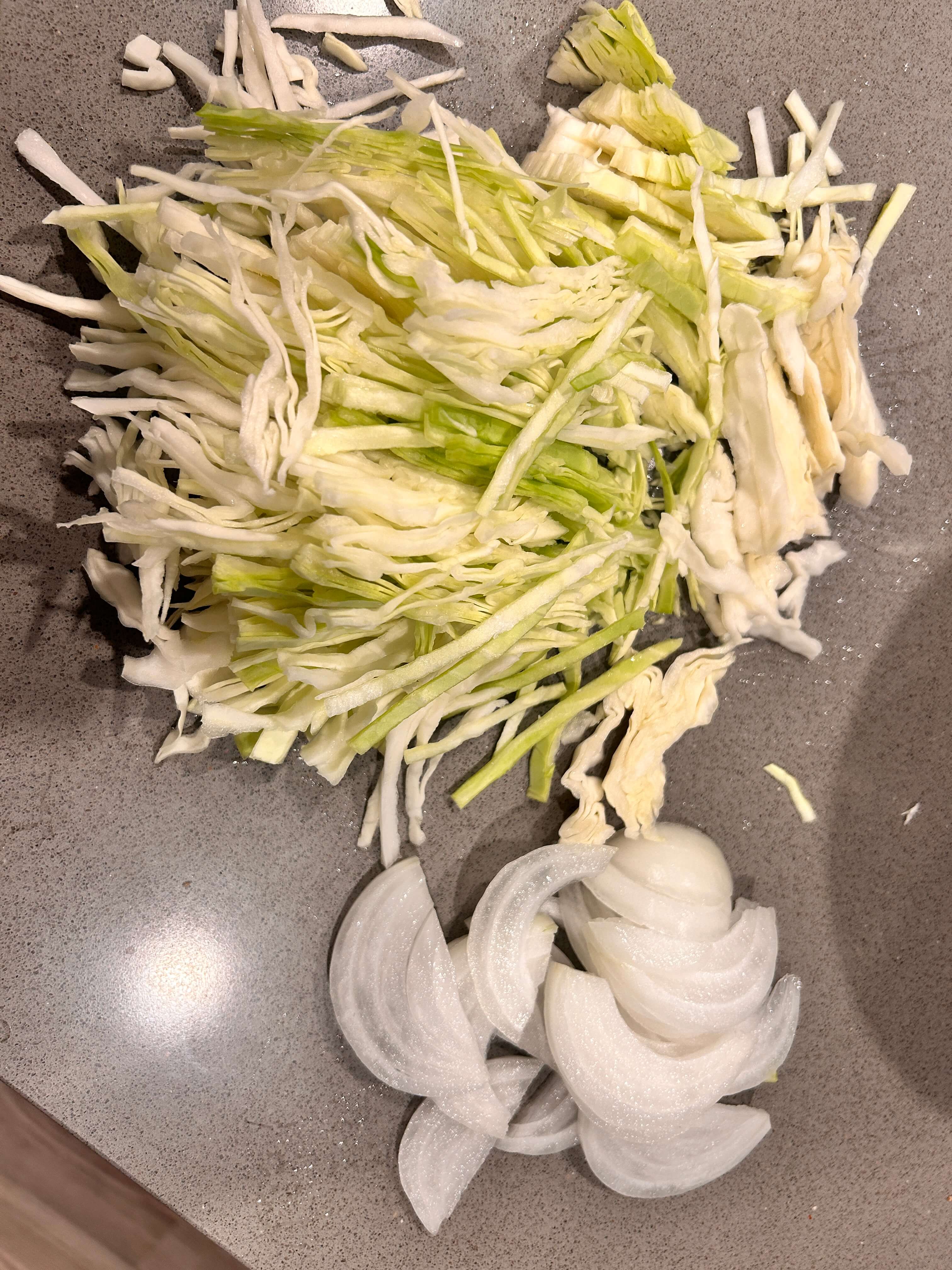 2. 양배추와 양파는 씻어서 먹기 좋은 크기로 손질해 줍니다.