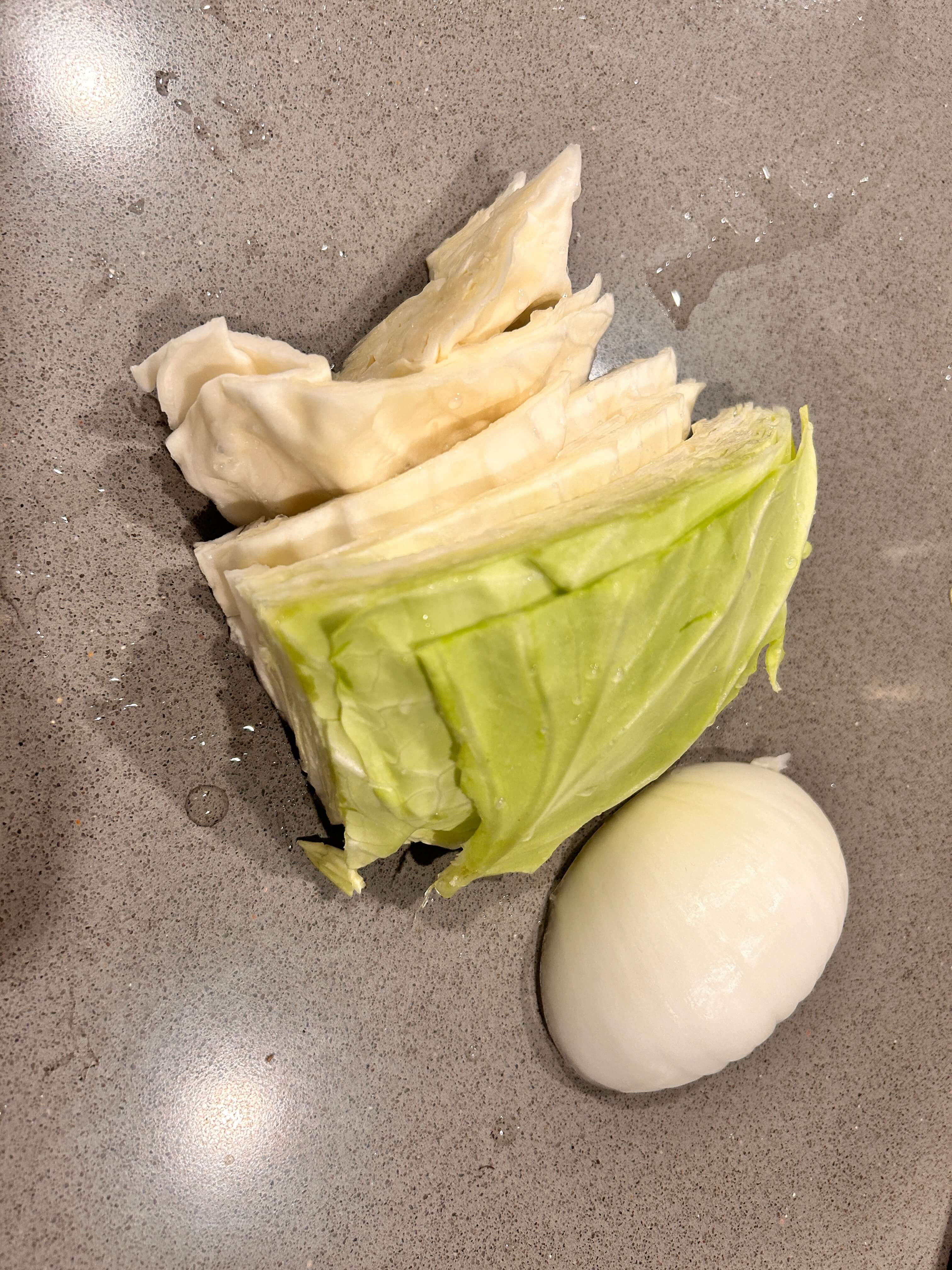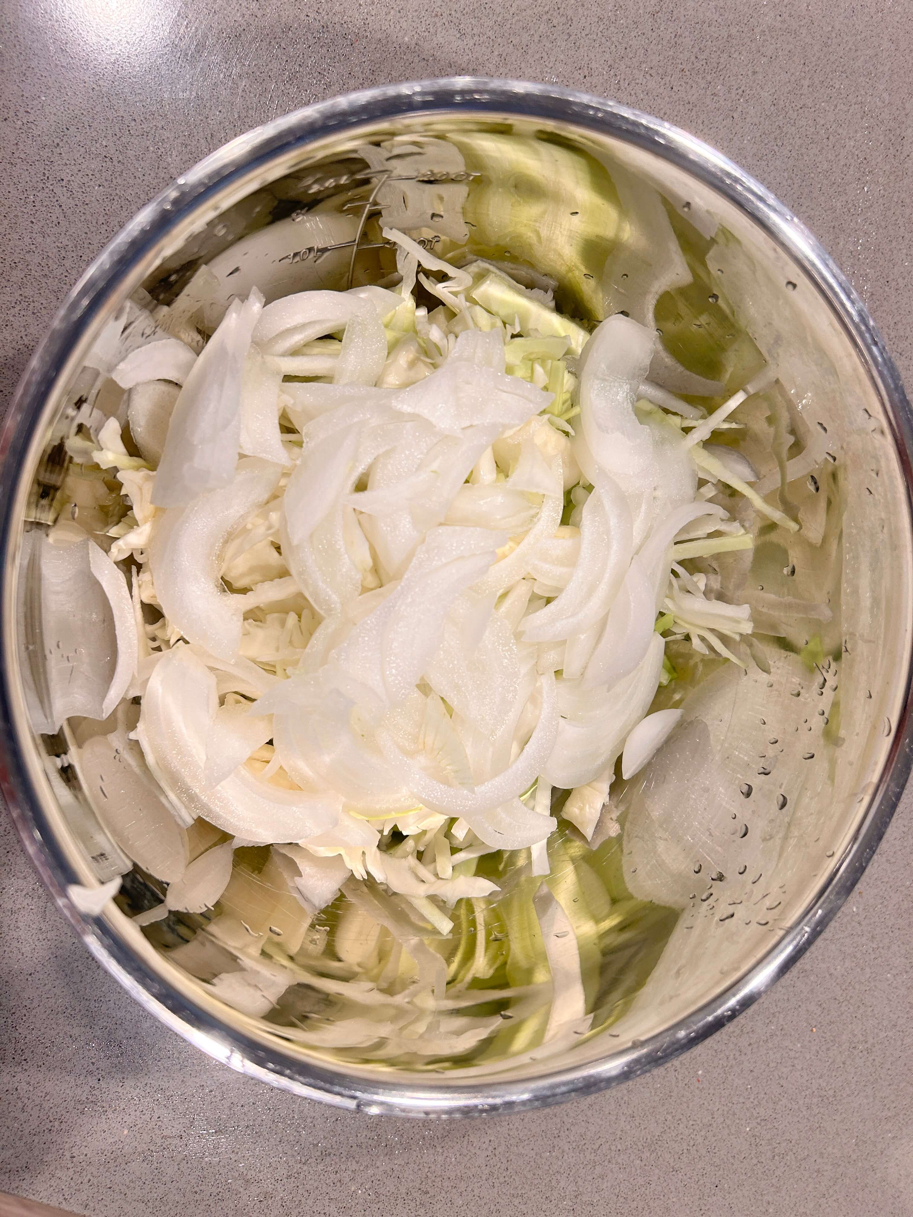 2. 양배추와 양파는 씻어서 먹기 좋은 크기로 손질해 줍니다.