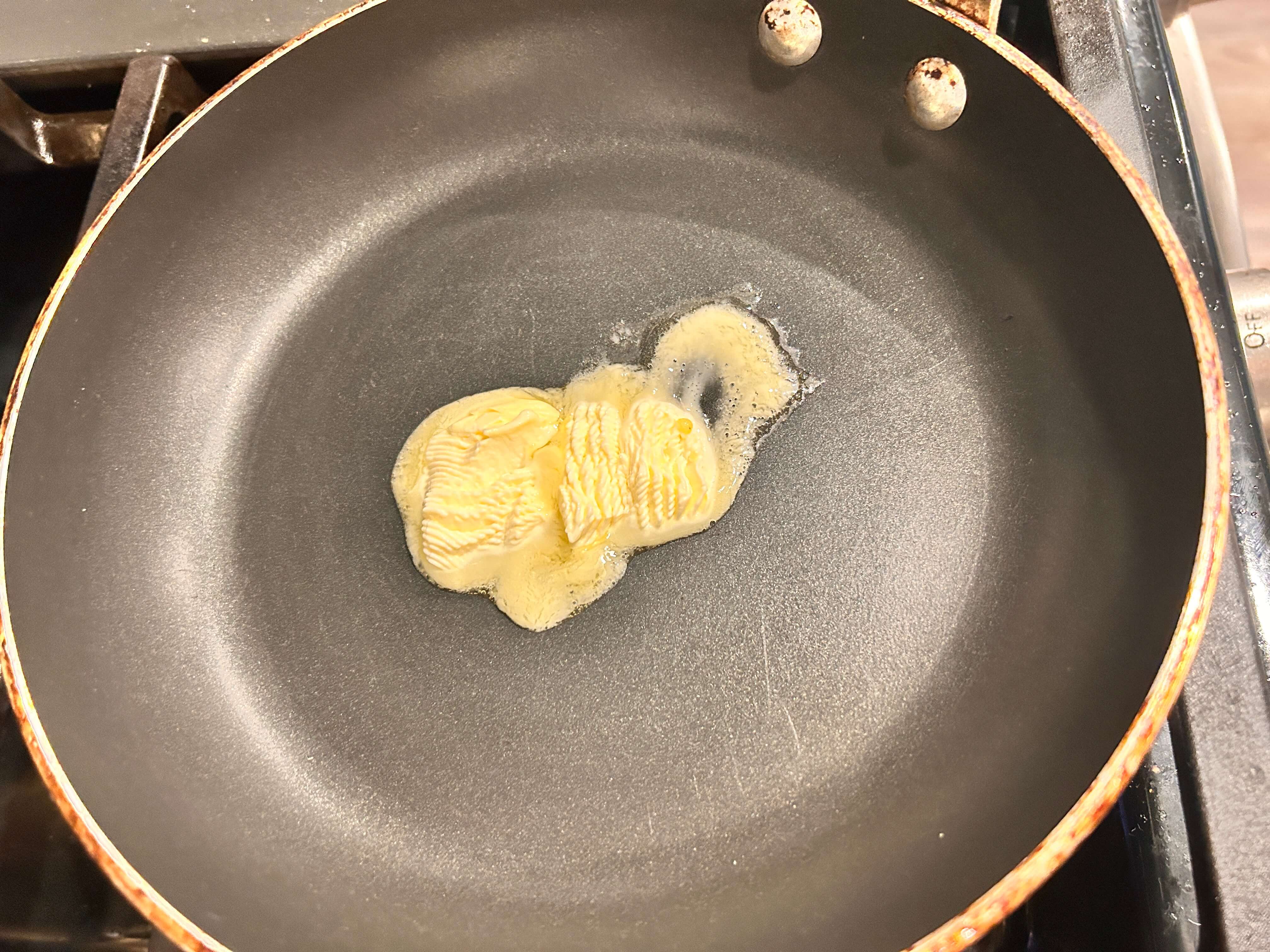 6. 팬에 버터를 녹여주고 속재료를 넣어줍니다.