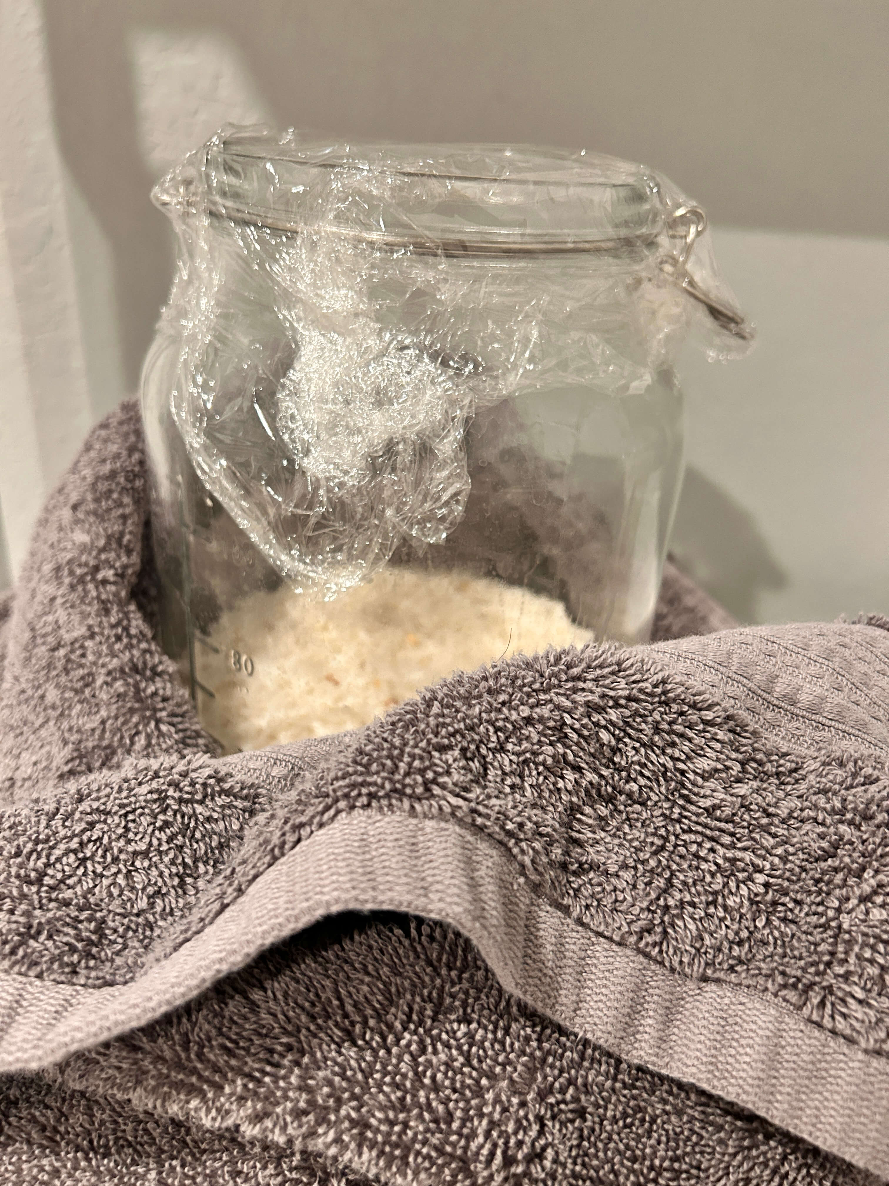 저는 요즘 집 온도가 69~71 화씨(20~22도) 정도여서 수건으로 감싸두었습니다.