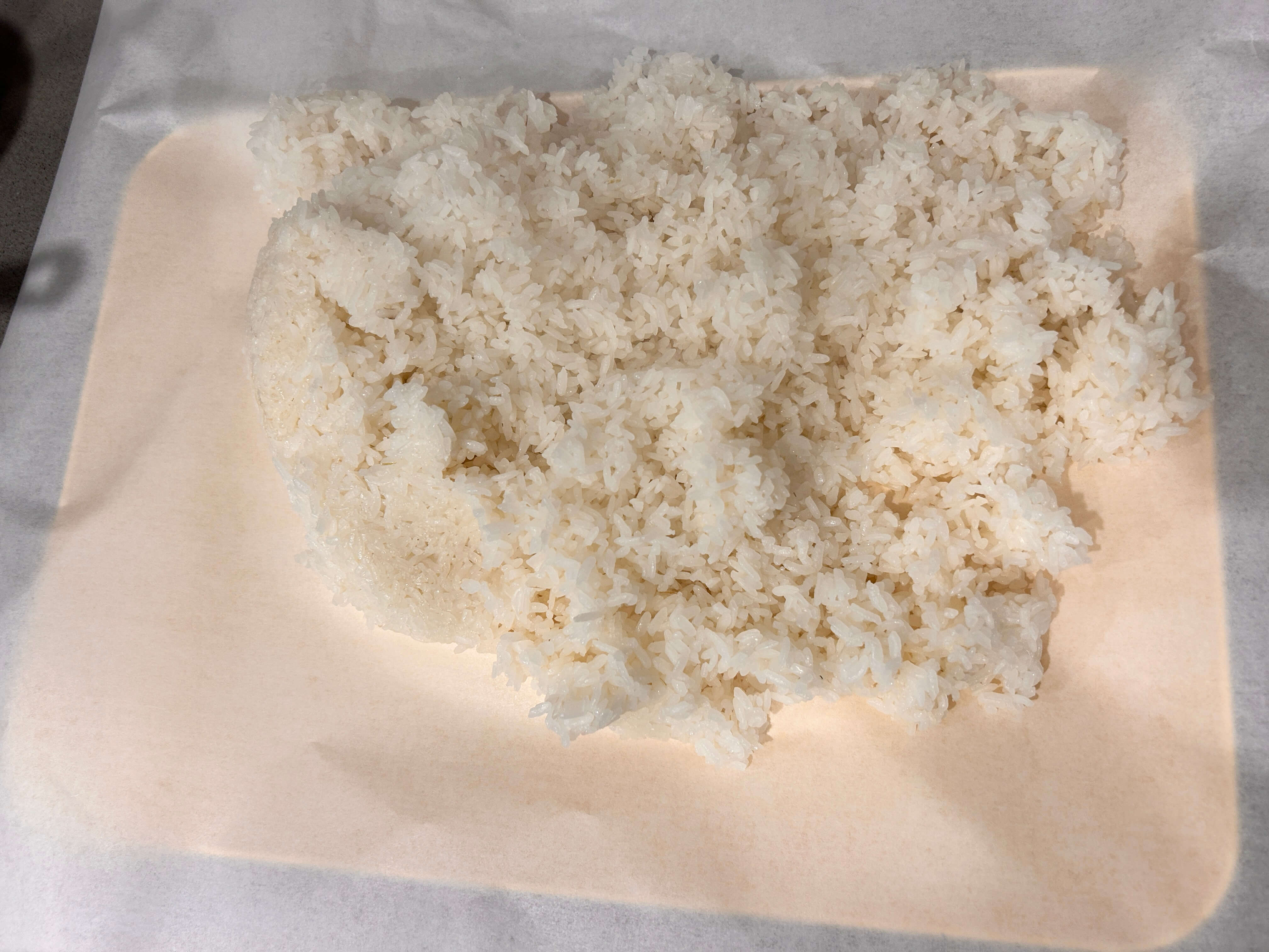 5. 꼬들꼬들한 밥은 넓게 펼쳐 약 30분 정도 식혀줍니다.