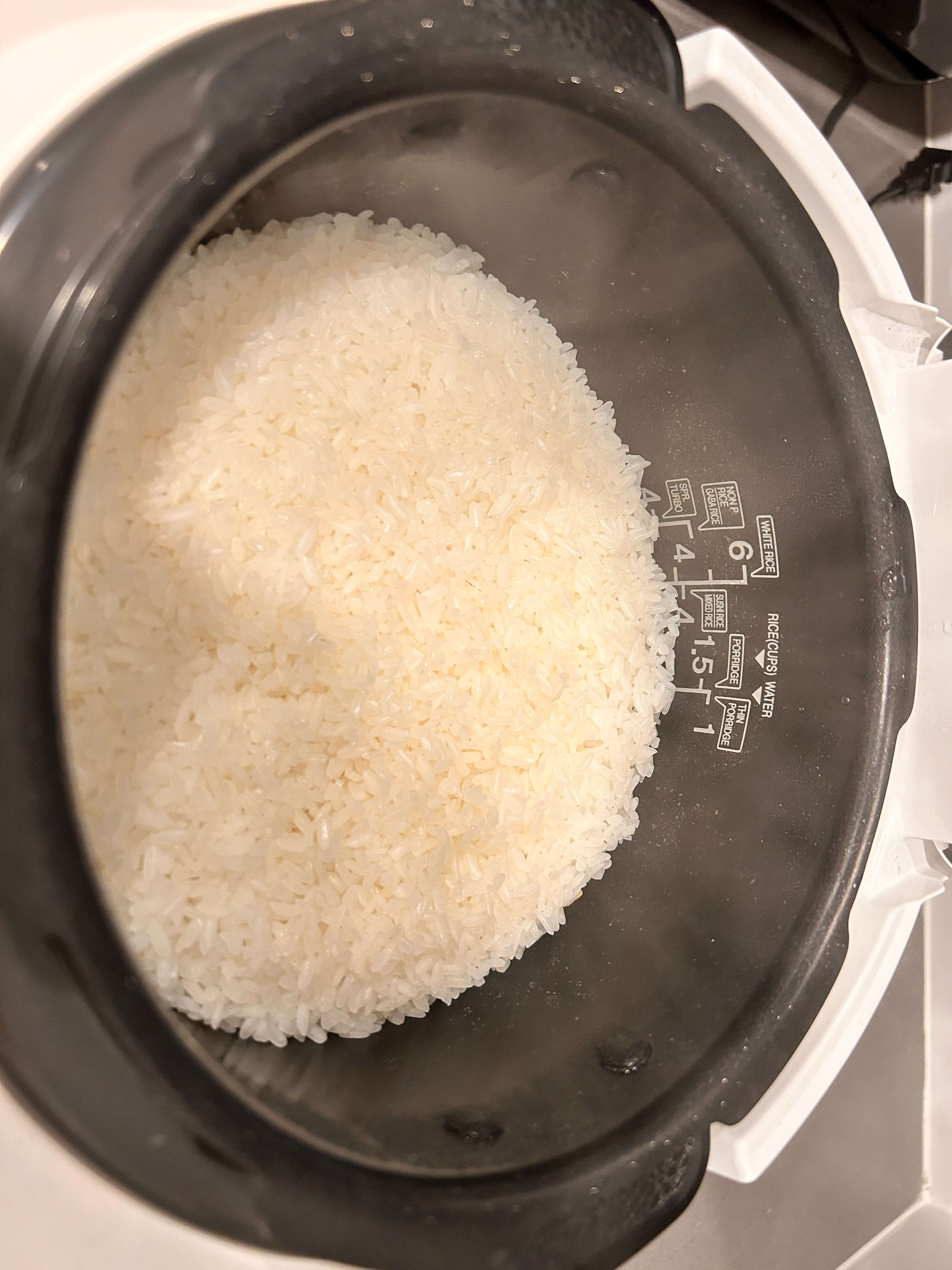 4. 물양은 쌀이 잠기기 않고 된밥을 지어주기 위해 적은 양을 넣어줍니다.