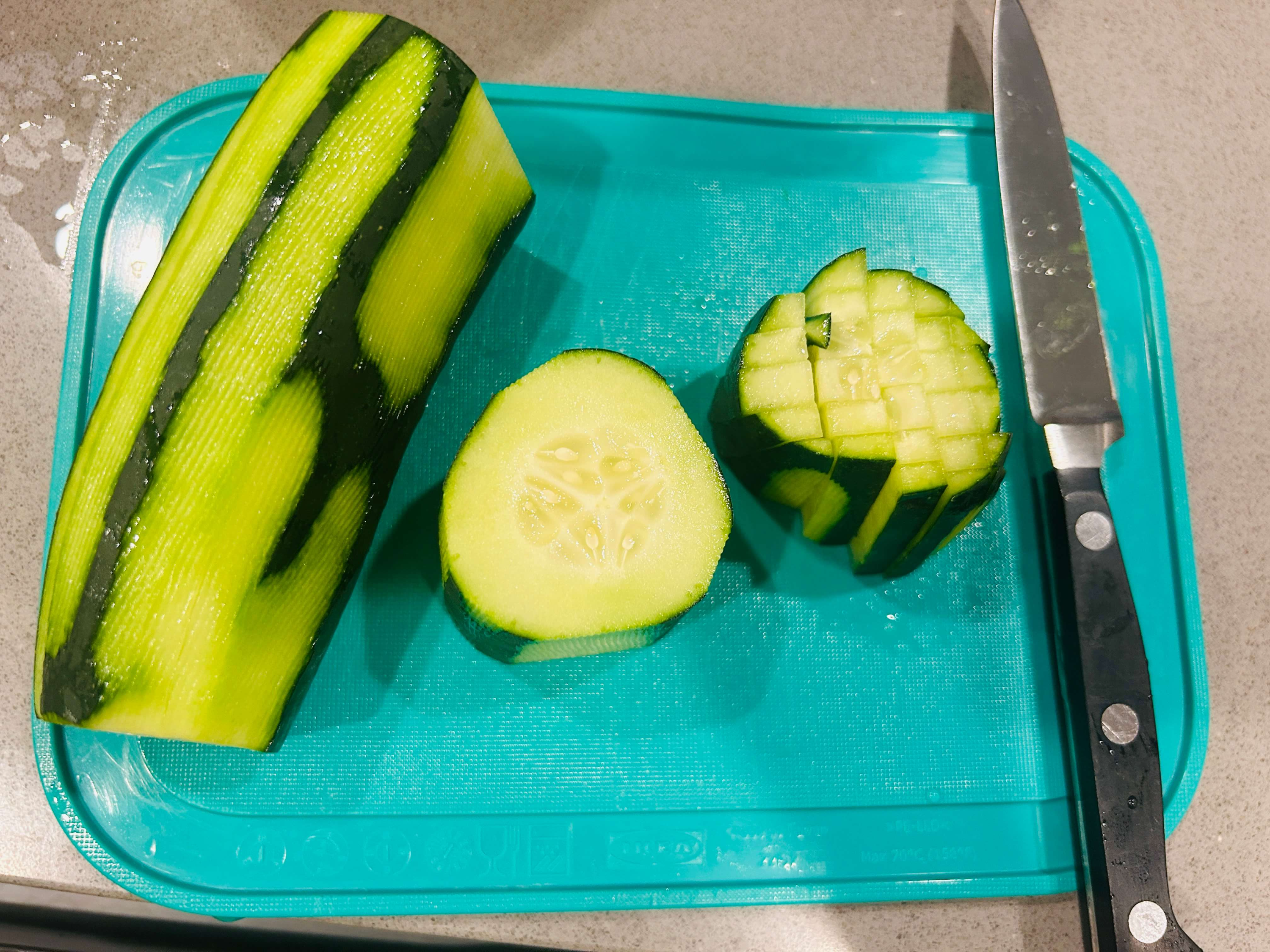 3. 오이는 얇게 채 썰어 준비해 줍니다.