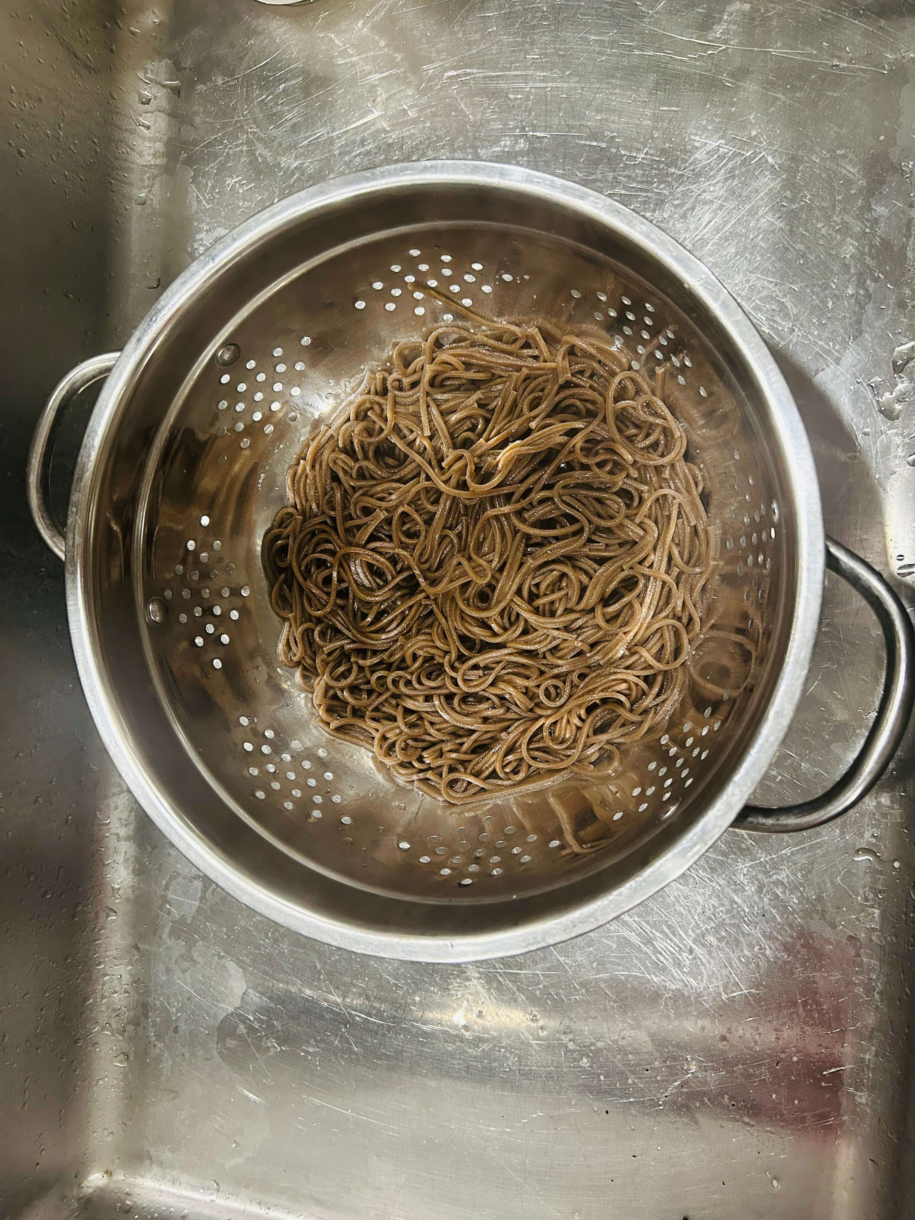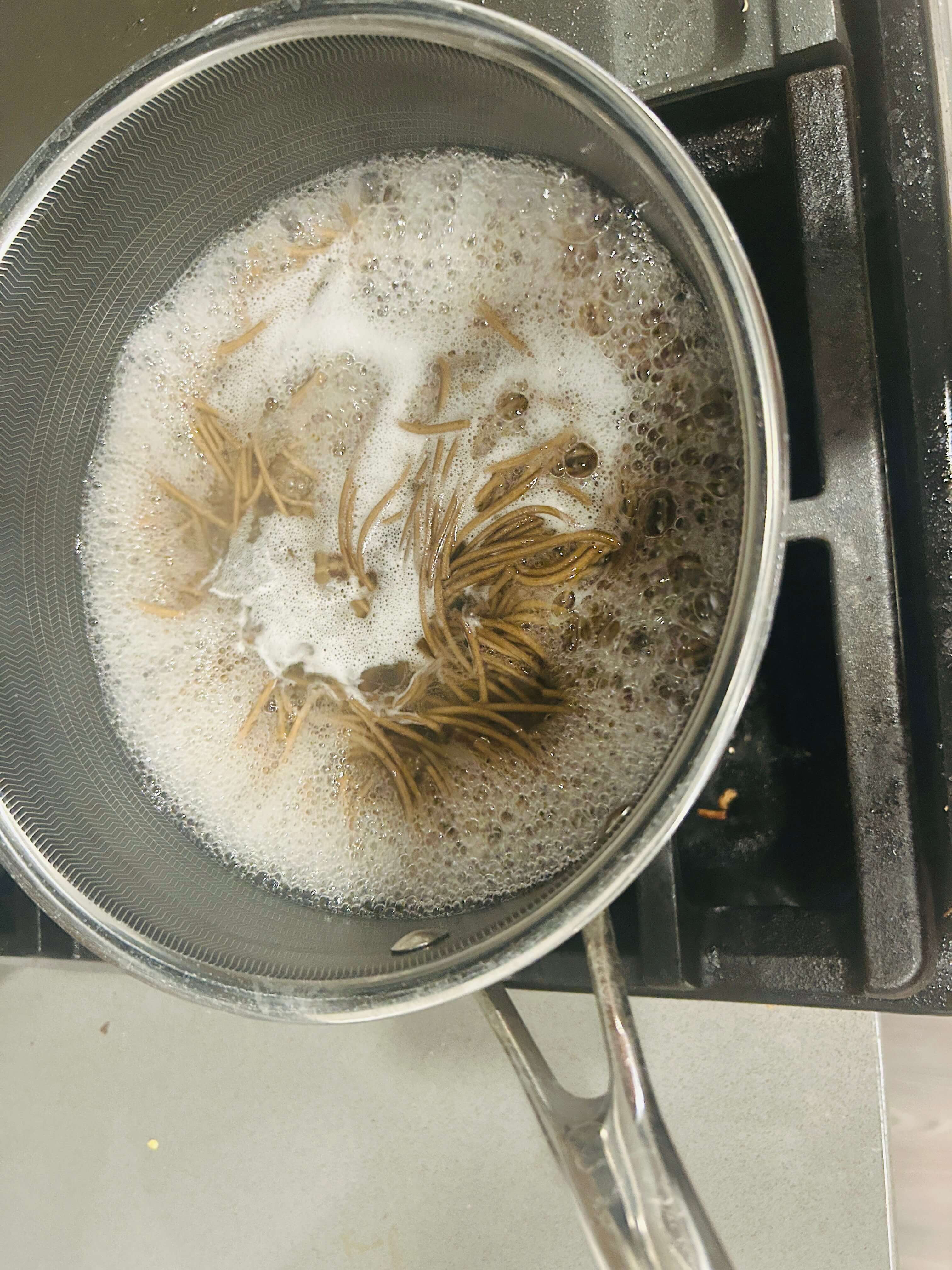 1. 메밀면을 끓는 물에 8분 정도 삶아줍니다.