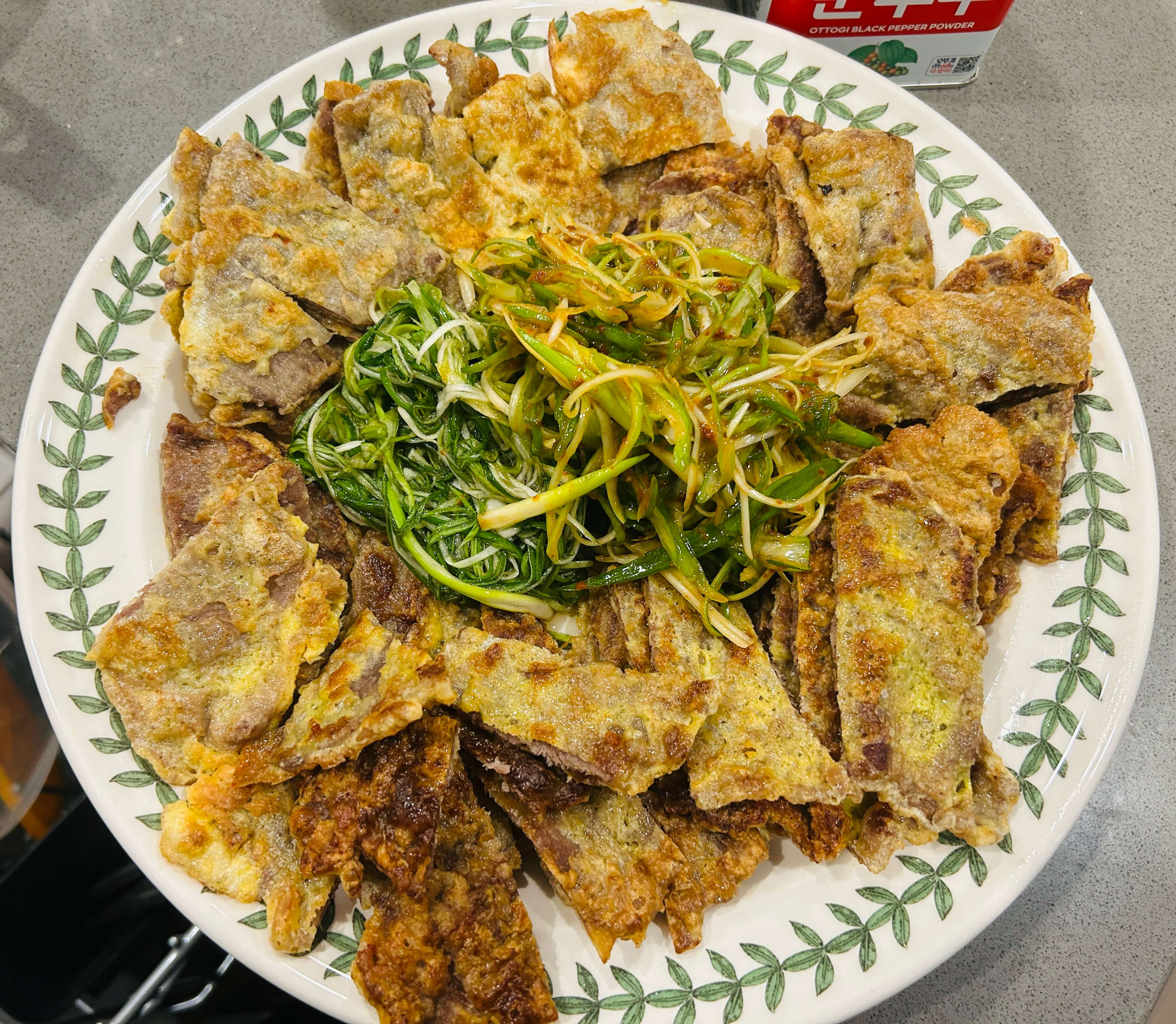 미국 코스트코에서 이런 얇은 고기를 살 때면 항상 육전을 해 먹게 되는 것 같습니다. 육전이 손이 많이 가는 전요리로 생각하실 수 있는데 만들어보시면 아시겠지만 레시피자체도 간단하고 준비재료도 간단해서 간식으로 반찬으로 쉽게 해 드실 수 있습니다. 육전 생각나실 때 만들어서 따끈하게 드시는 거 추천드립니다. 사드시는 것보다 값싸고 양껏 먹을 수 있다는 최고 장점인 육전으로 오늘도 맛있는 한 끼 되시길 바랍니다.