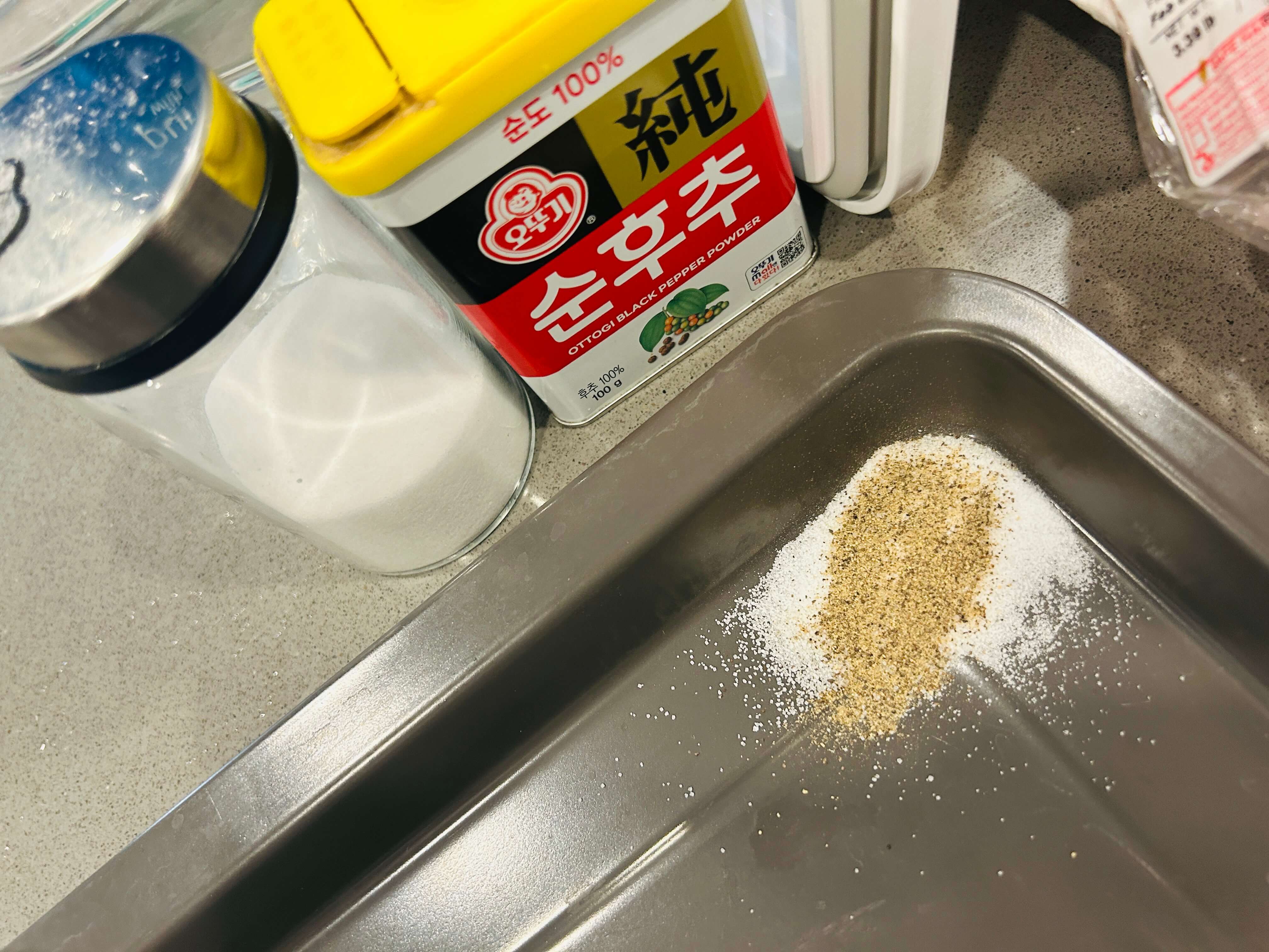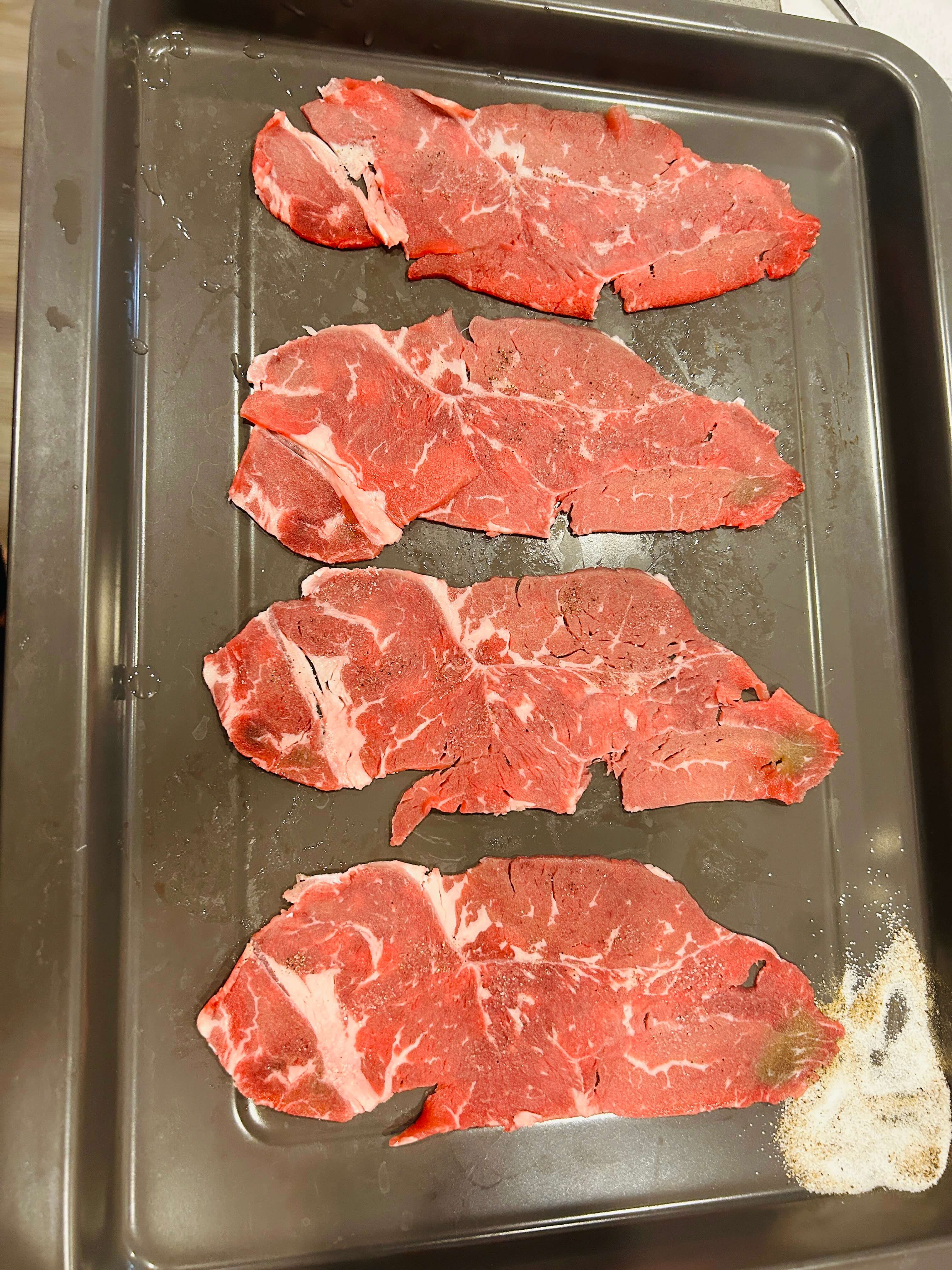 2. 소고기 한면에 소금 후추로 밑간을 해 줍니다.