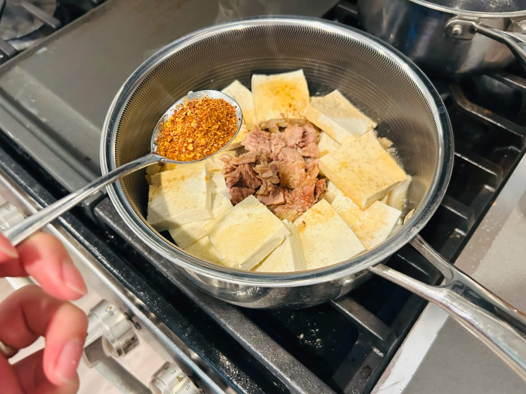 9. 기호에 따라 고춧가루 한 숟갈을 추가해 줍니다.