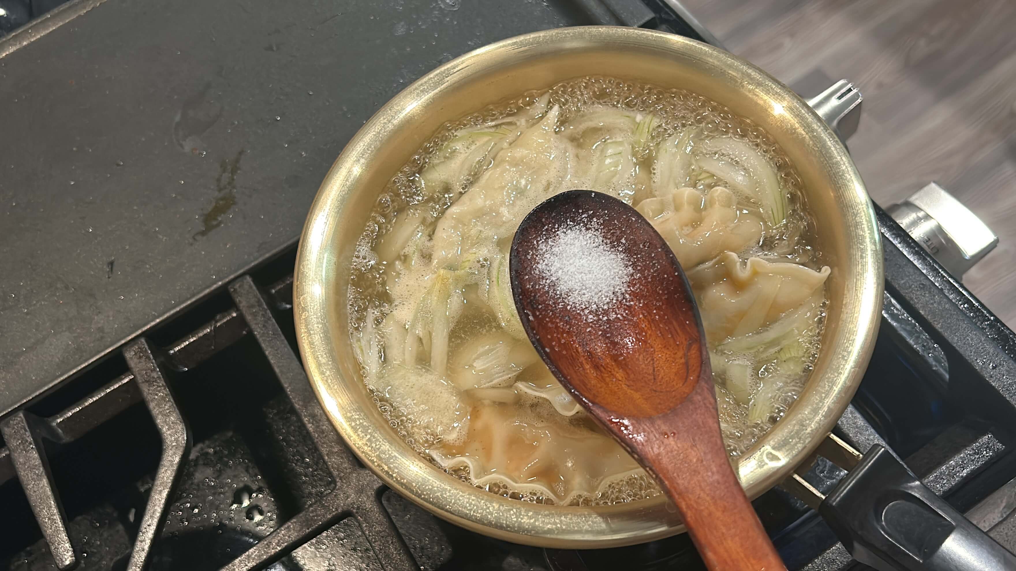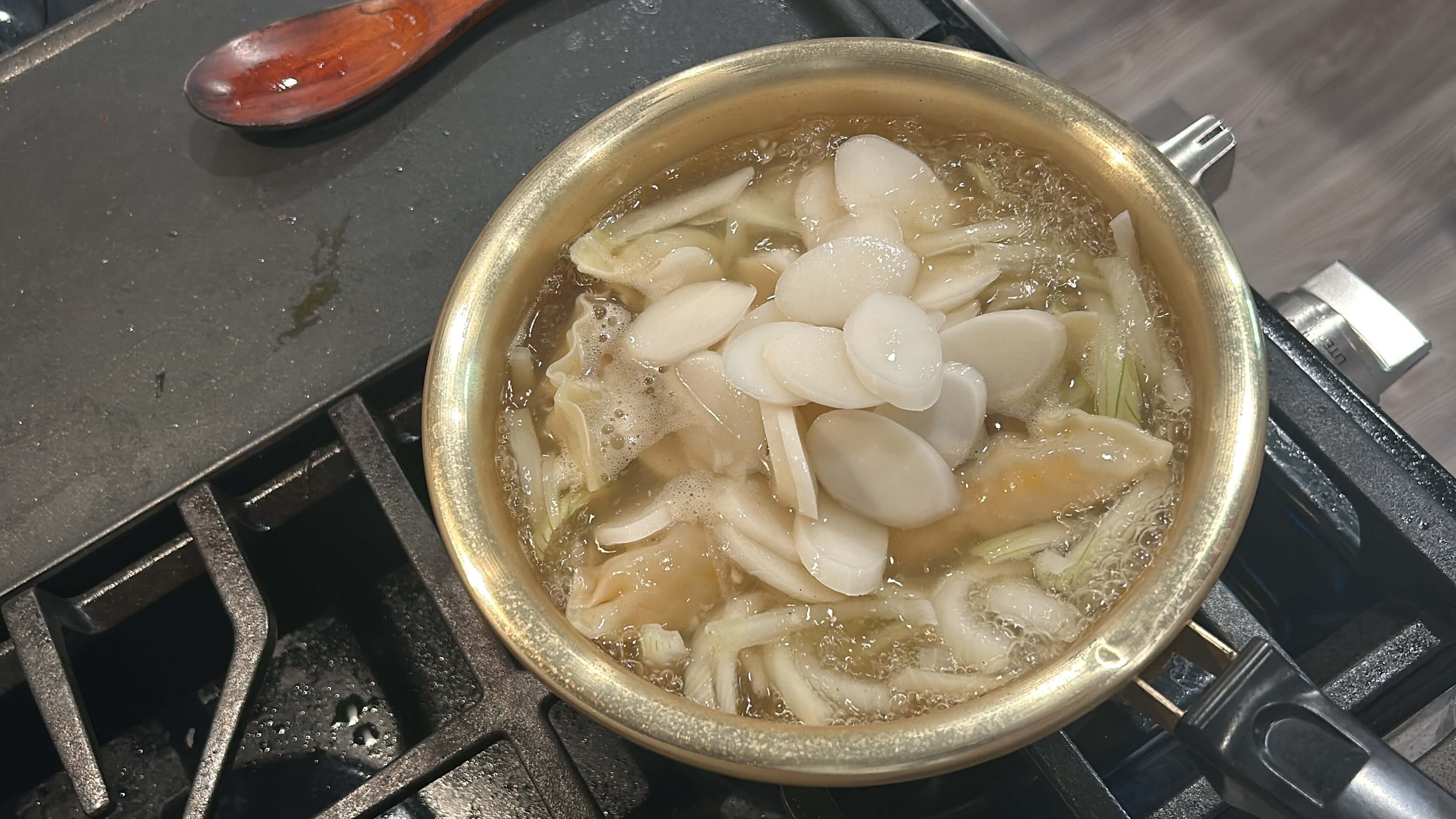 8. 만두가 익을 때쯤, 떡국떡을 넣어줍니다.