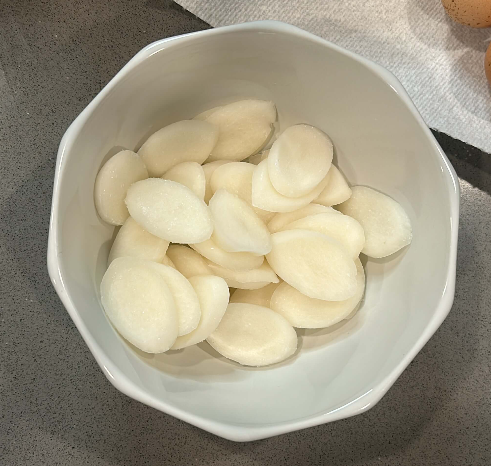 3. 떡국 떡은 물에 담아 씻어줍니다.