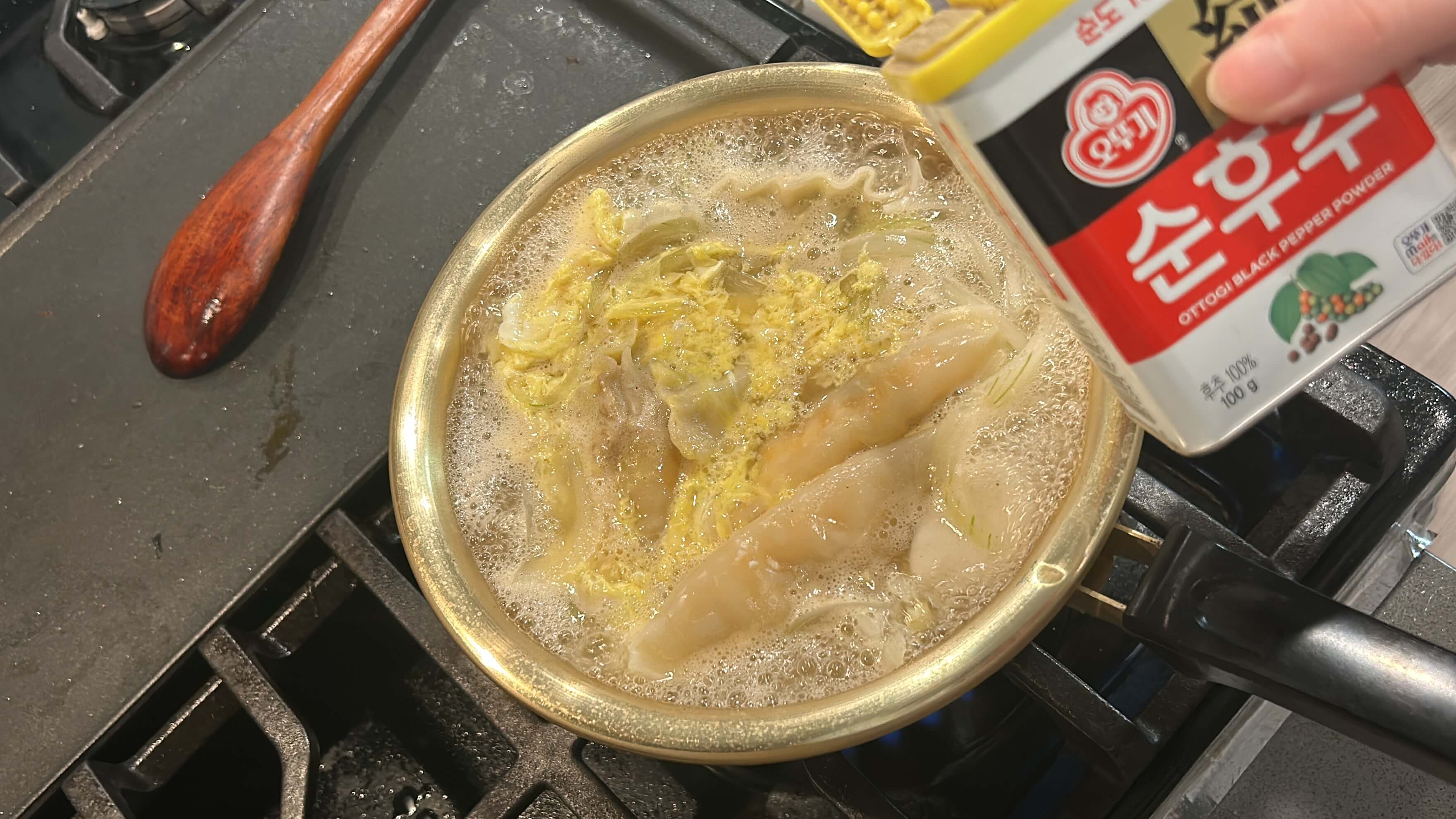 6. 준비한 만두를 넣어줍니다.