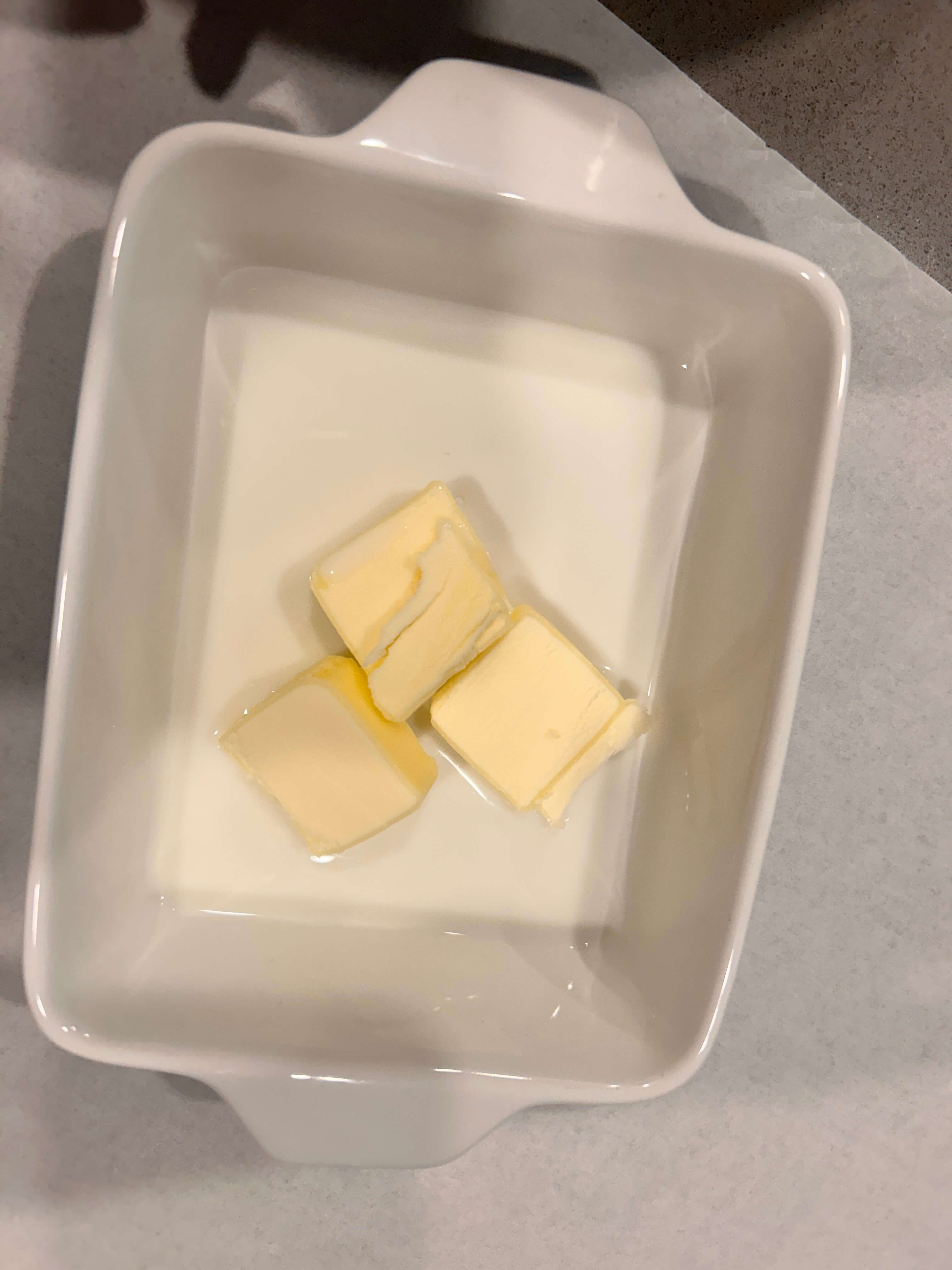 8. 무염버터 30g에 우유 30g을 넣고 전자레인지에 돌려줍니다.