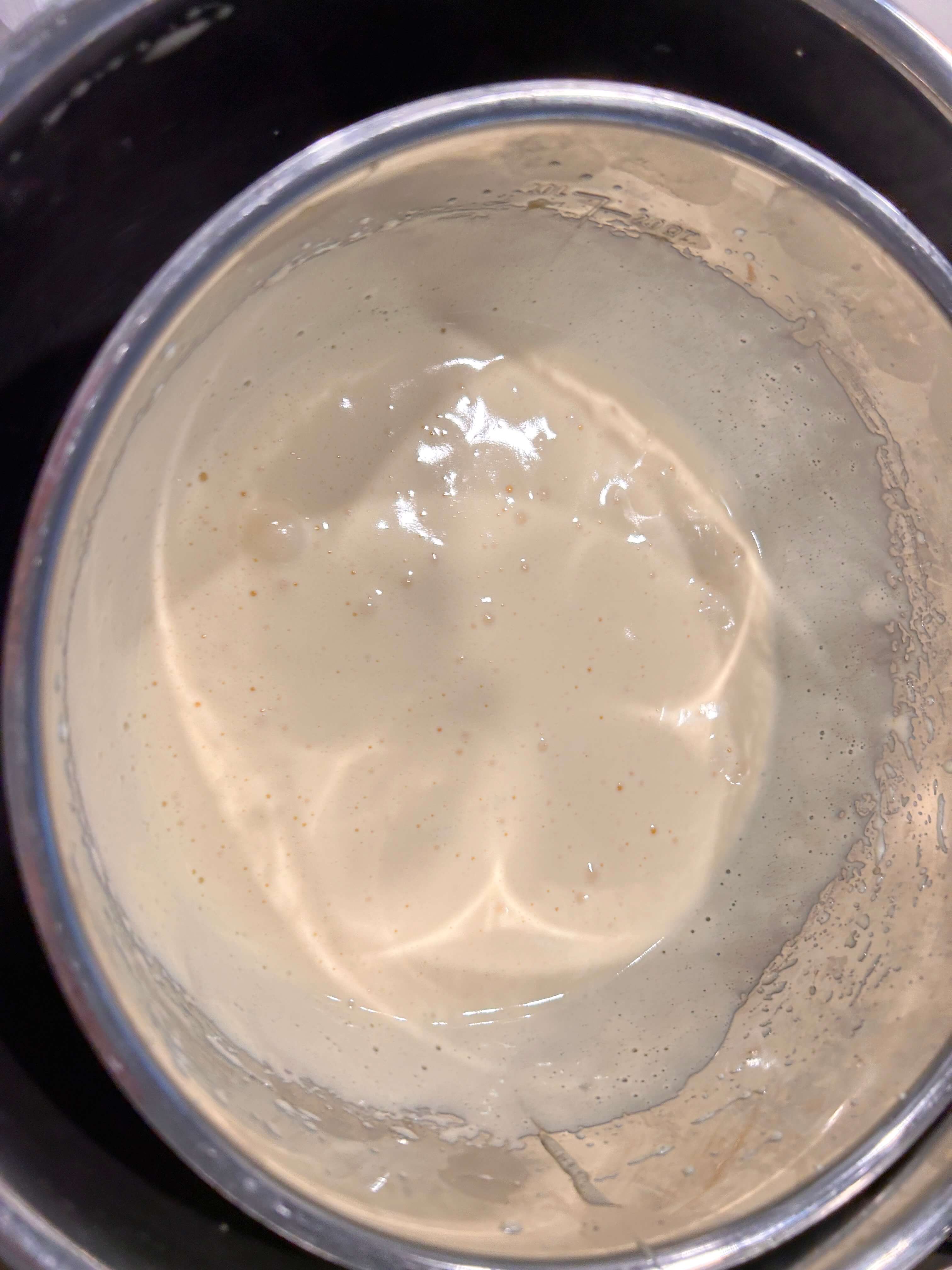 7. 반죽을 흘려보았을 때 3초 정도 그 모양이 유지되면 휘핑을 멈추어 줍니다.