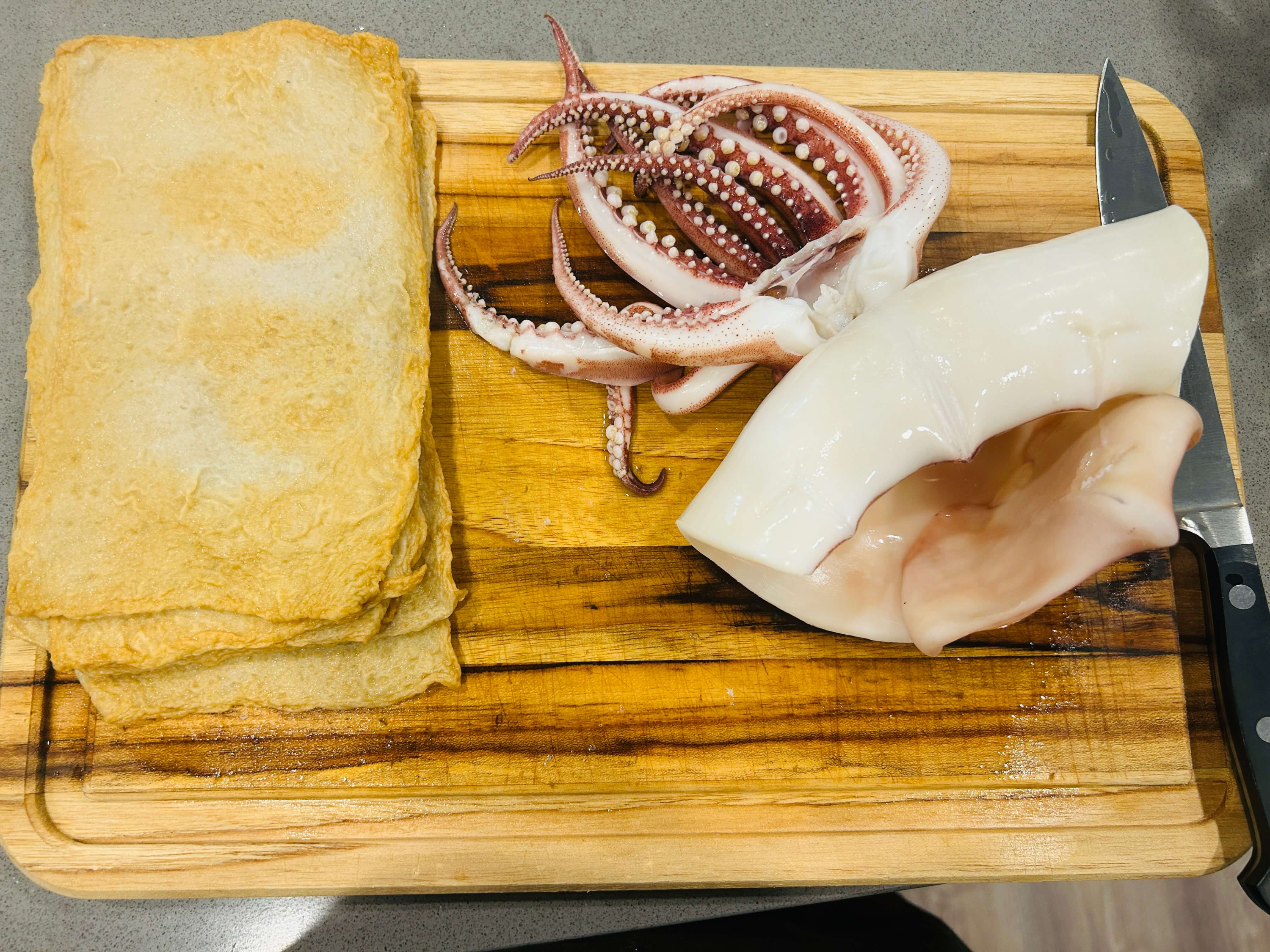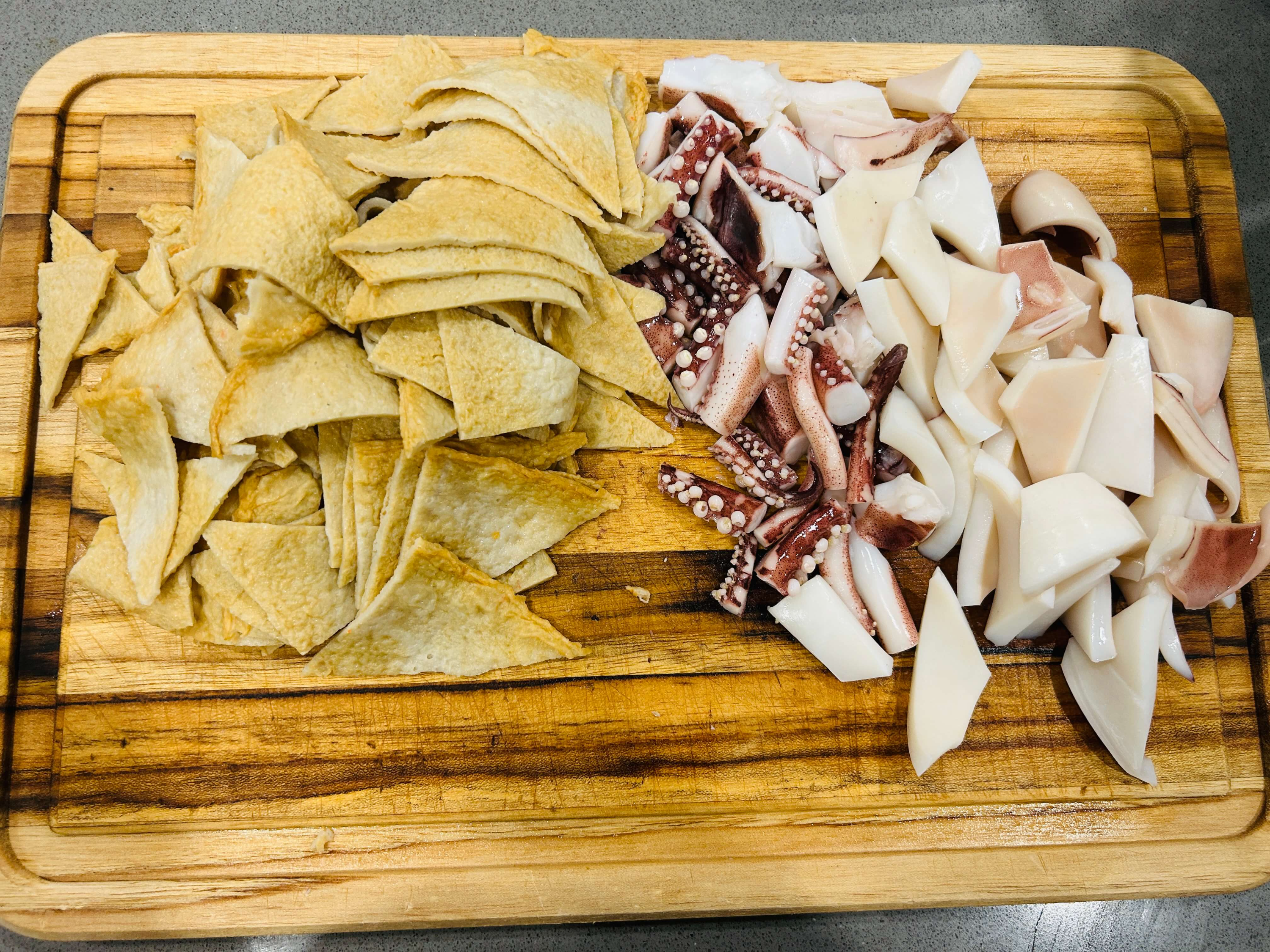 4. 데친 오징어와 어묵은 물기를 제거해 줍니다.