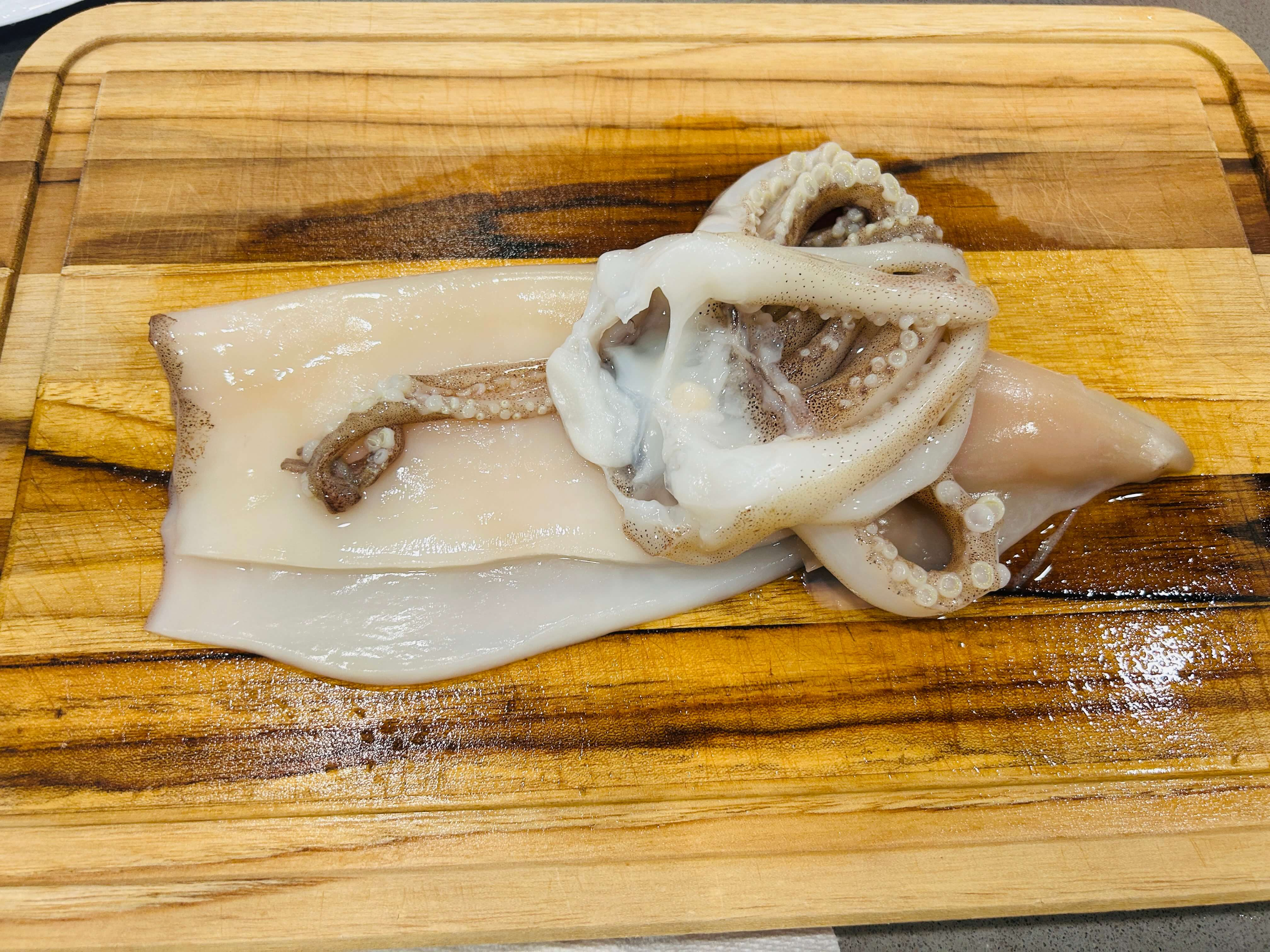 1. 오징어는 껍질과 내장을 제거해 손질해 줍니다.