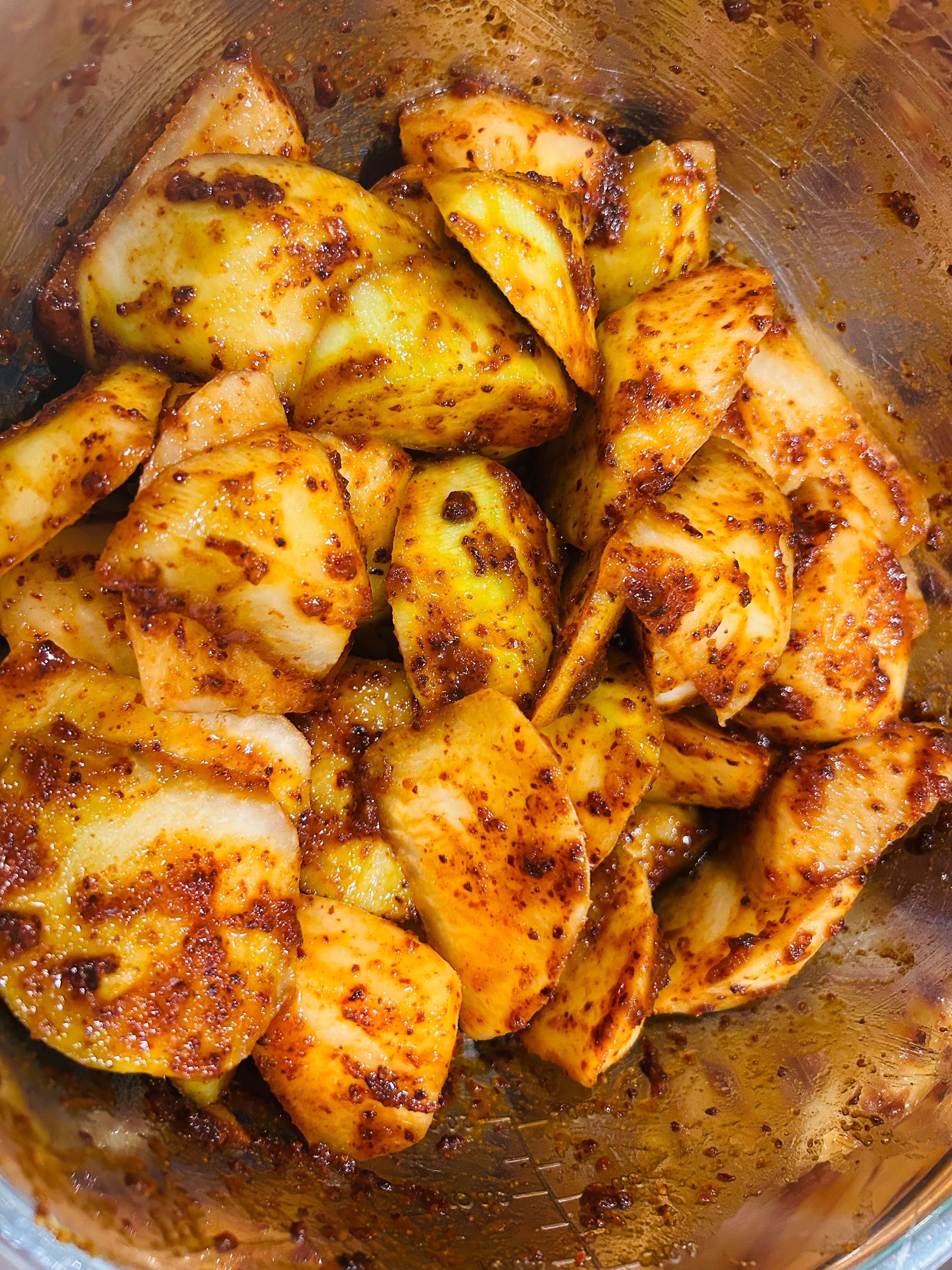 6. 양념에 절인무를 넣고 잘 버무려 줍니다.