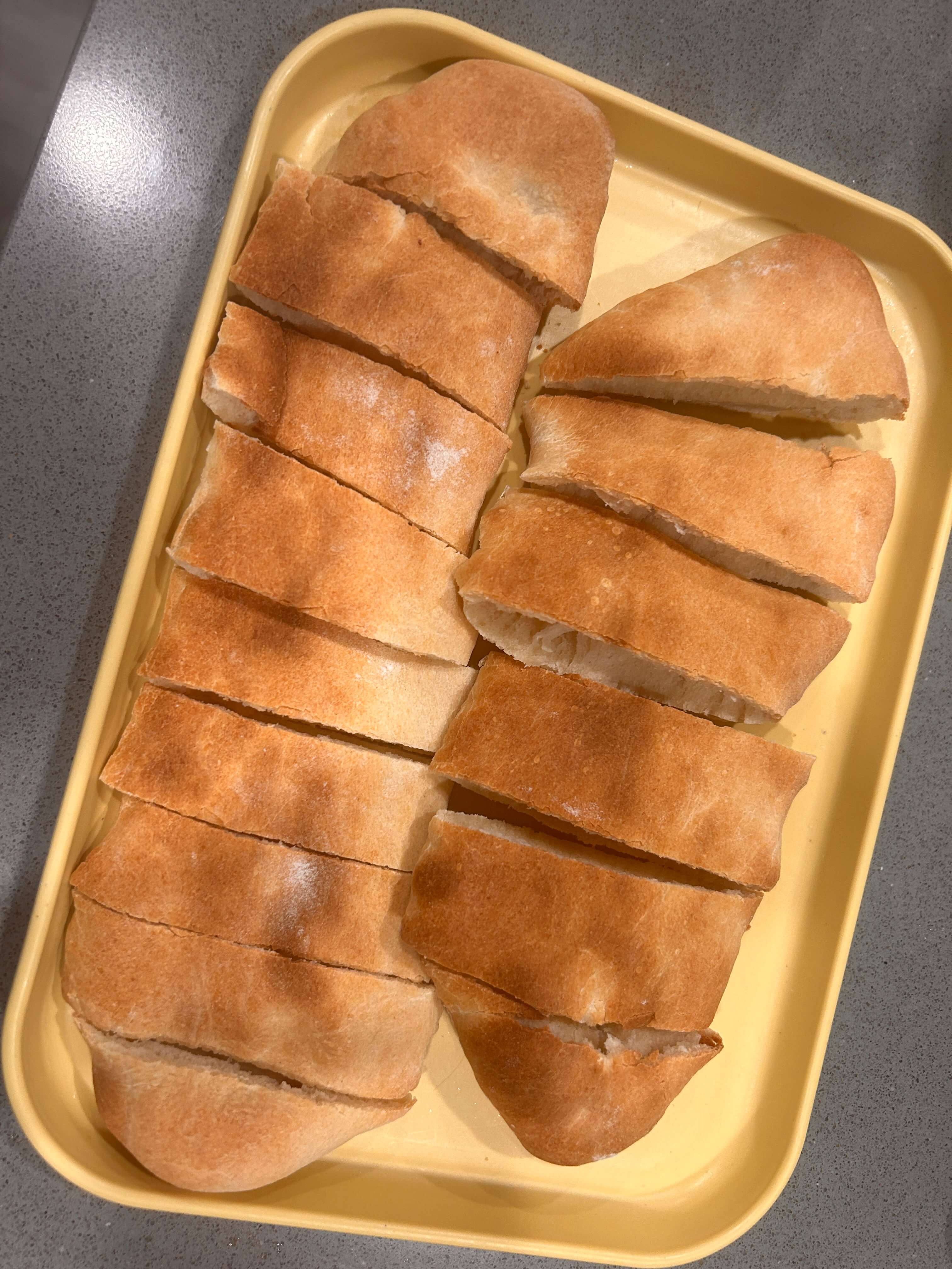 11. 잘 구워진 도우는 먹기 좋은 크기로 잘라서 준비해 줍니다.