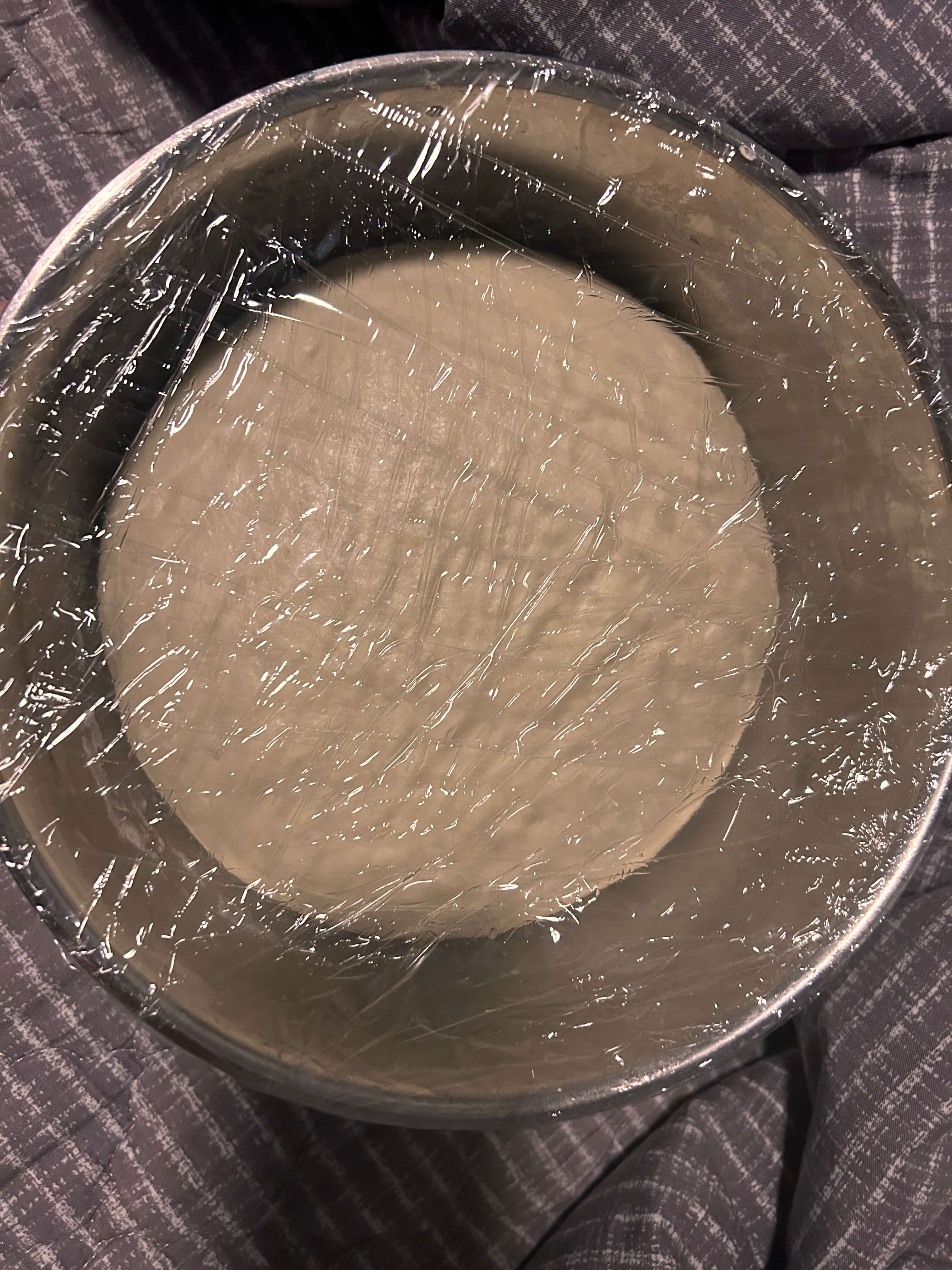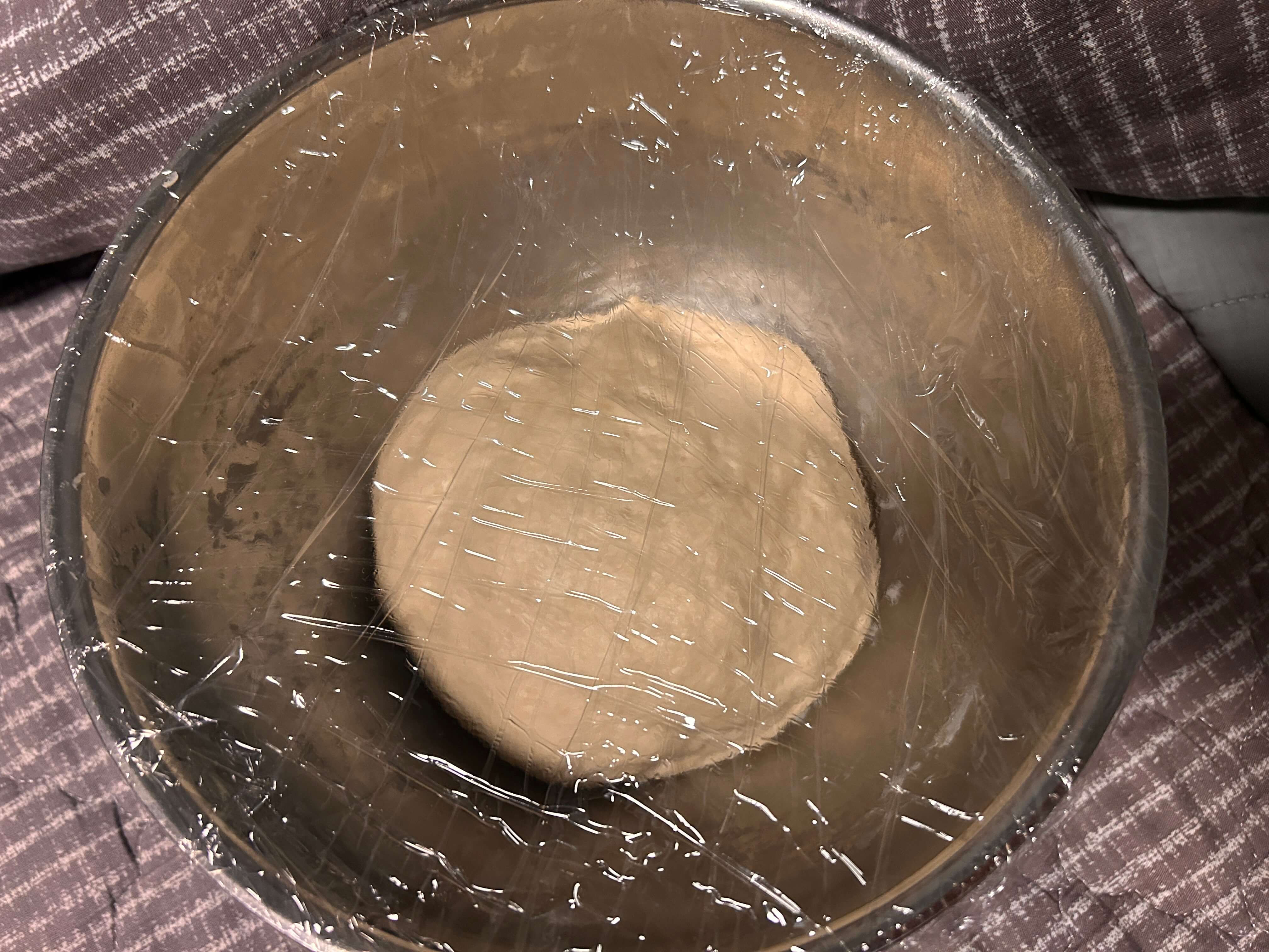 5. 반죽을 손으로 잘 치대준 뒤, 따뜻한 곳에 1시간 이상 발효시켜 줍니다.