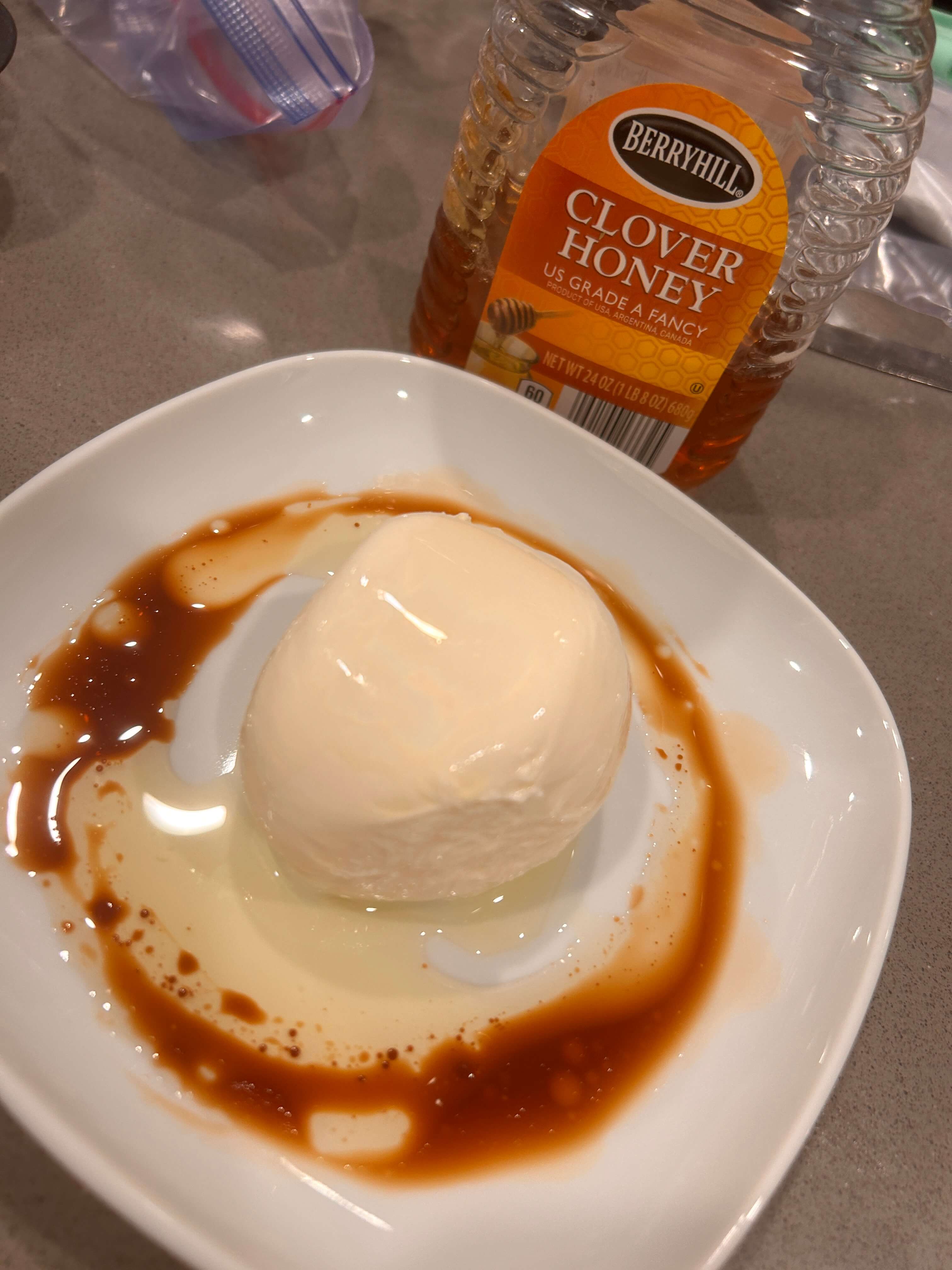 10. 피자가 구워질 동안 브라타치즈는 올리브오일, 발사믹, 꿀을 적절하게 뿌려 준비해 줍니다.(바질, 시금치등과 같이 준비해 주시면 더 좋습니다.)