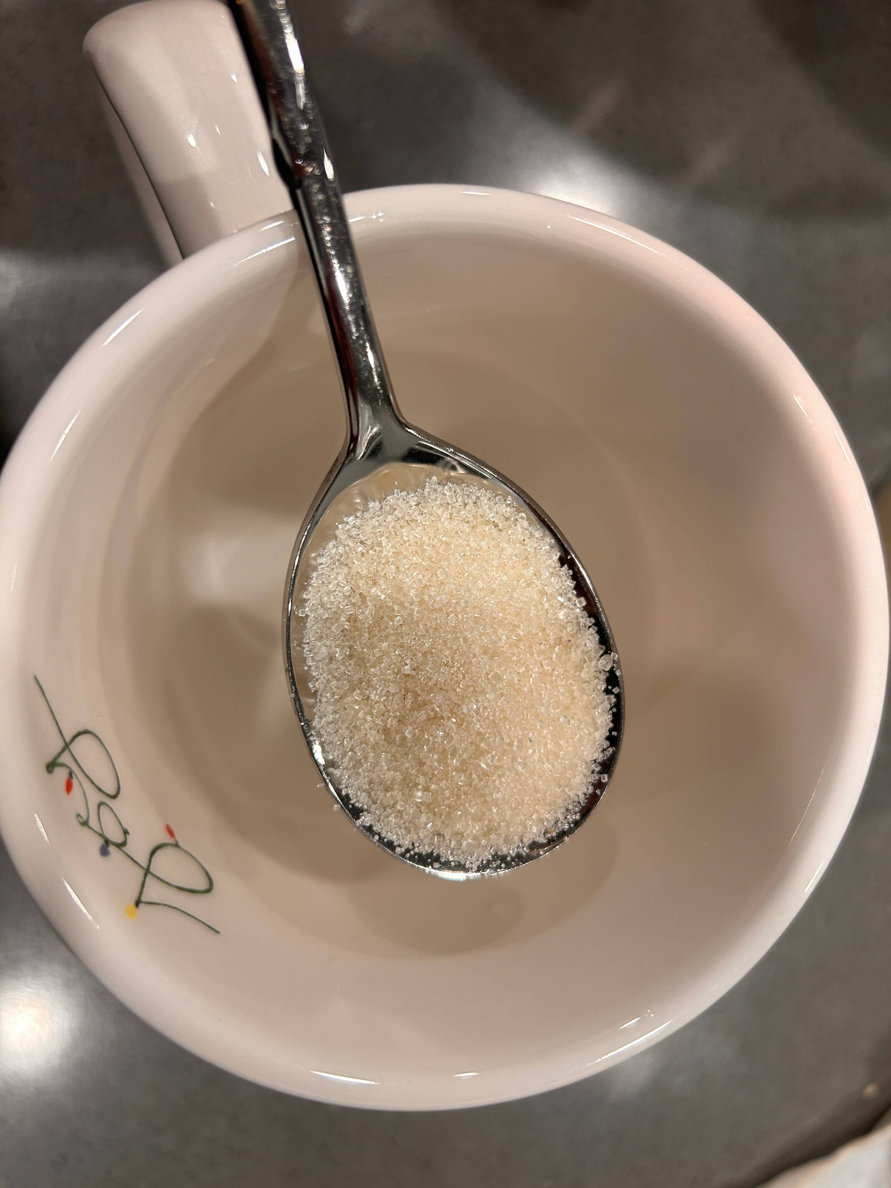 2. 따뜻한 물에 설탕 1 숟갈, 드라이이스트 1 숟갈을 넣고 잘 섞어 10분 정도 실온에 둡니다.