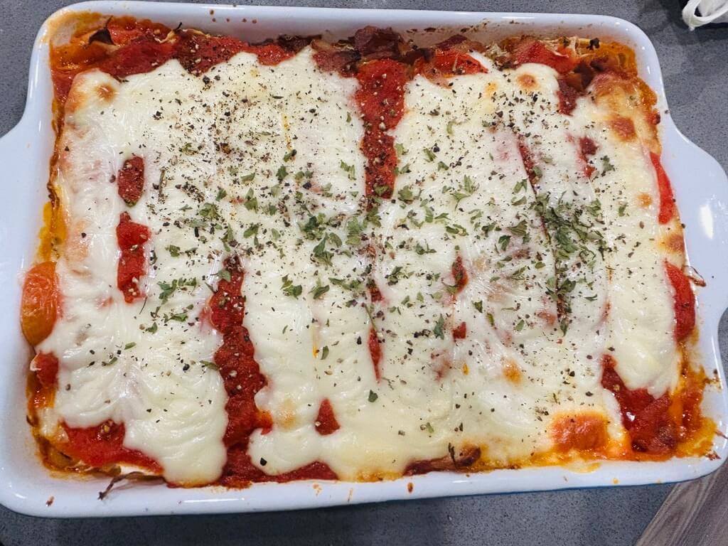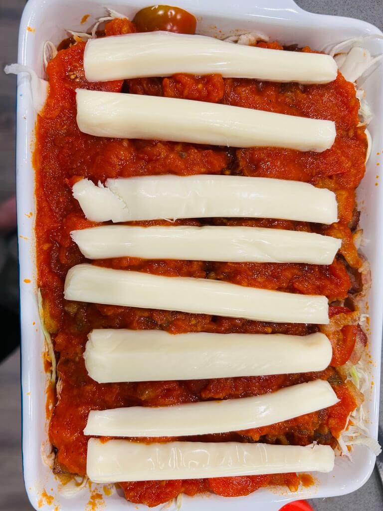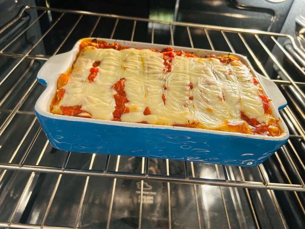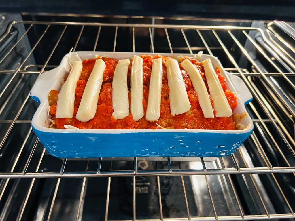 10. 오븐에 넣고 치즈가 녹아 노릇해질 때까지 구워줍니다.