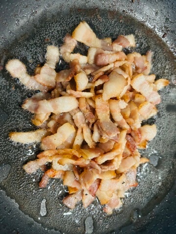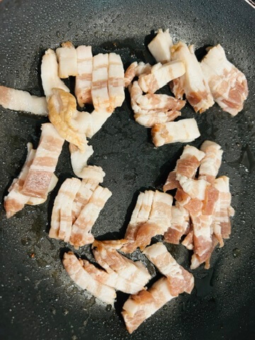 3. 프라이팬에 베이컨을 바짝 볶아줍니다.