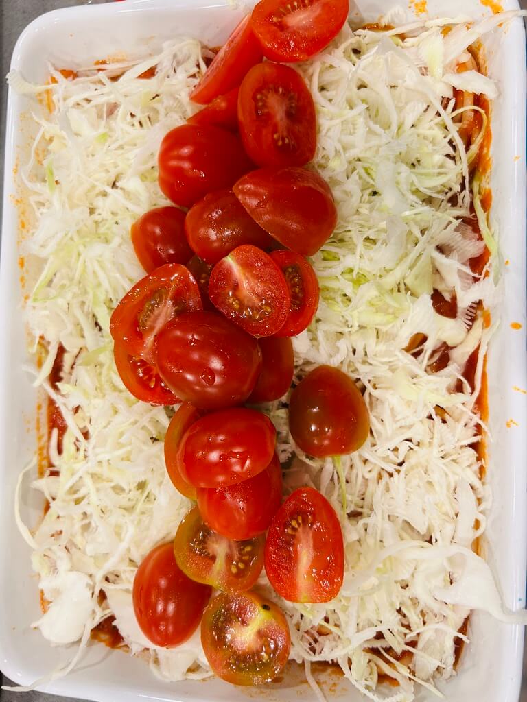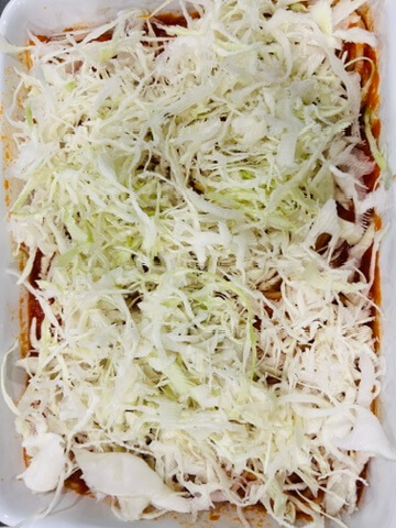 5. 양배추를 채 썰어서 올려줍니다.