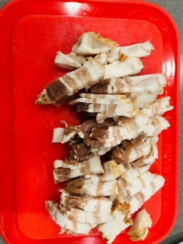 2. 베이컨은 작은 크기로 잘라 줍니다.
