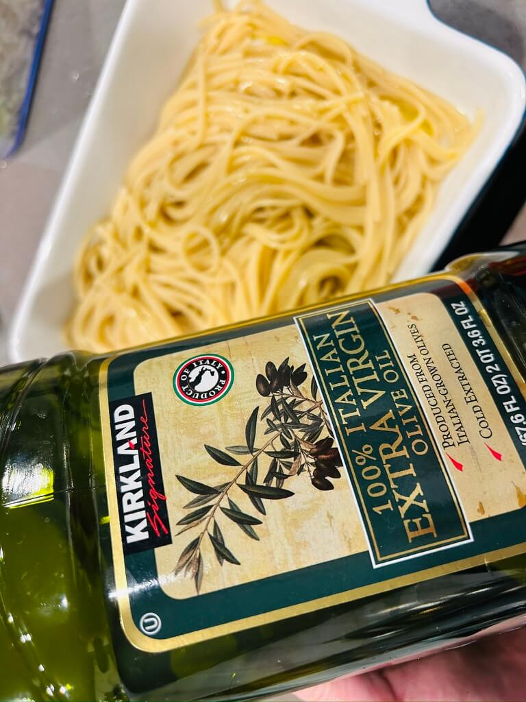 1. 파스타면을 삶아 올리브오일을 버무려 준비해 줍니다.