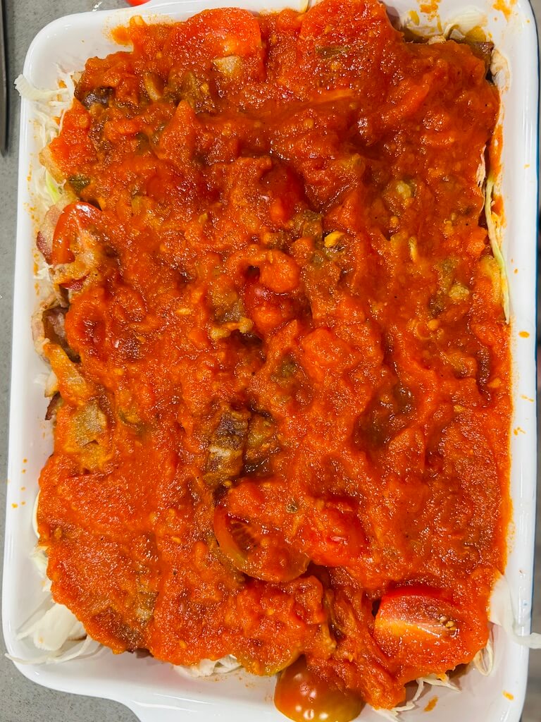 8. 마지막으로 소스로 재료를 덮어줍니다.