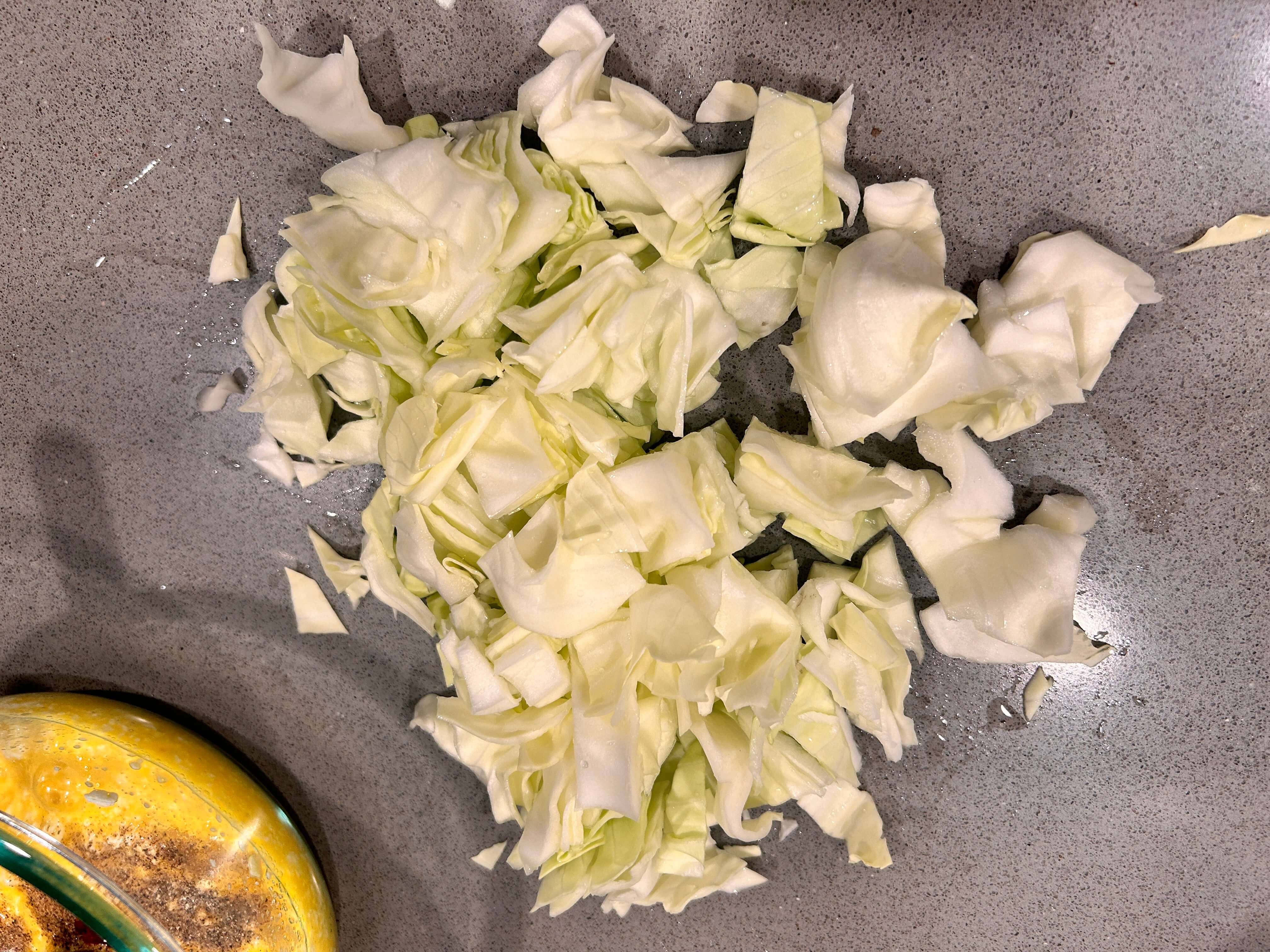 4. 양배추도 잘게 썰어 씻어 줍니다.