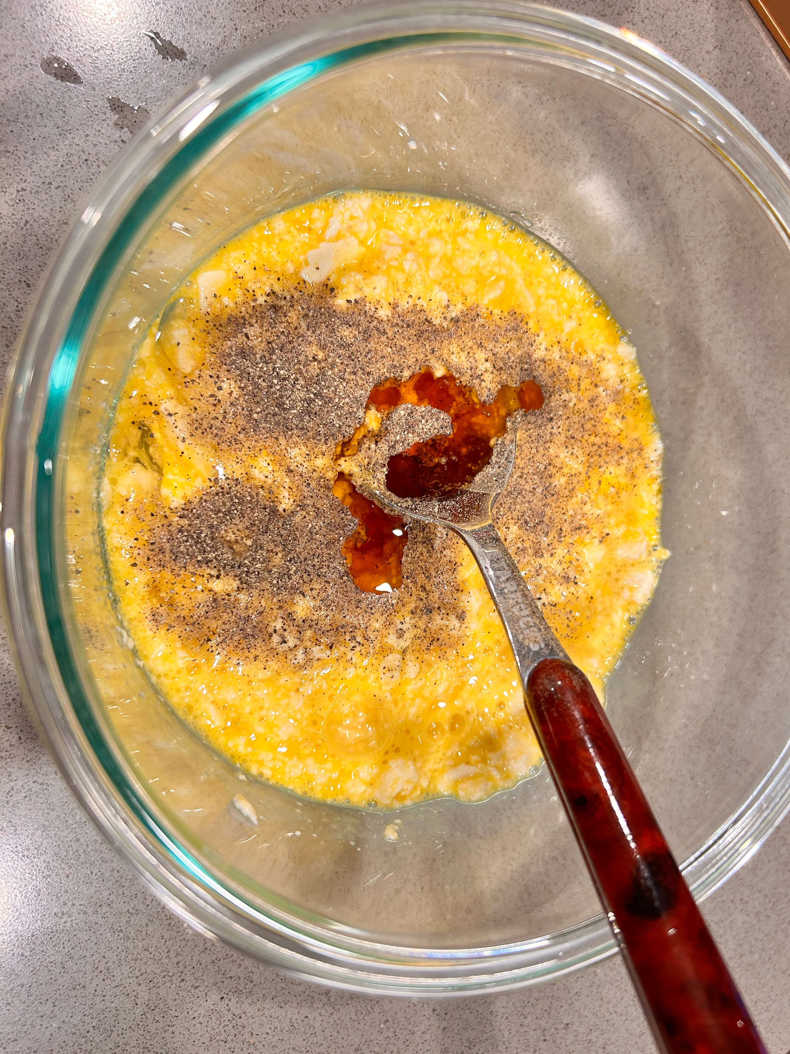 3. 소금, 후추, 참기름을 조금씩 넣어 간을 해 줍니다.