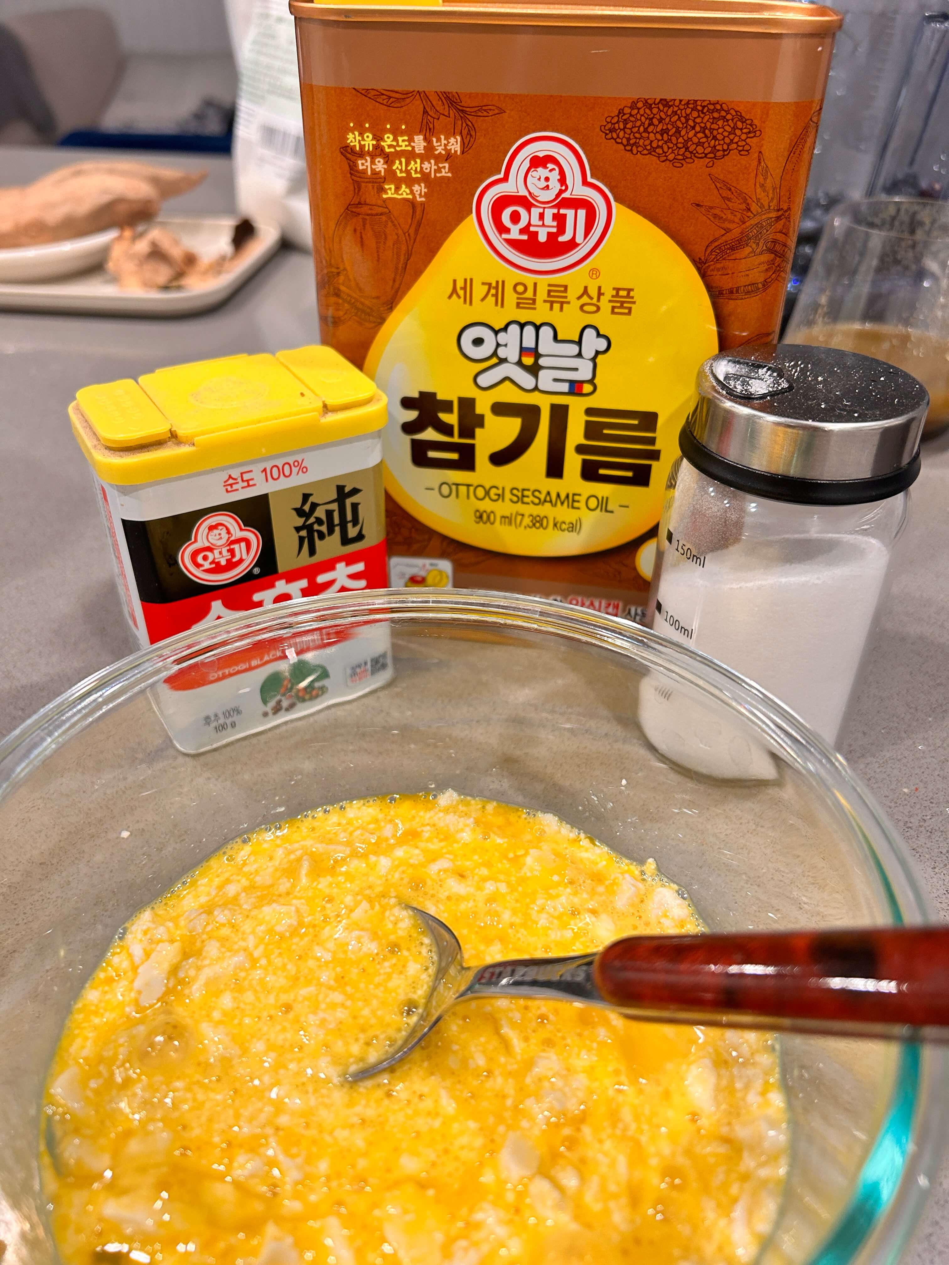 3. 소금, 후추, 참기름을 조금씩 넣어 간을 해 줍니다.
