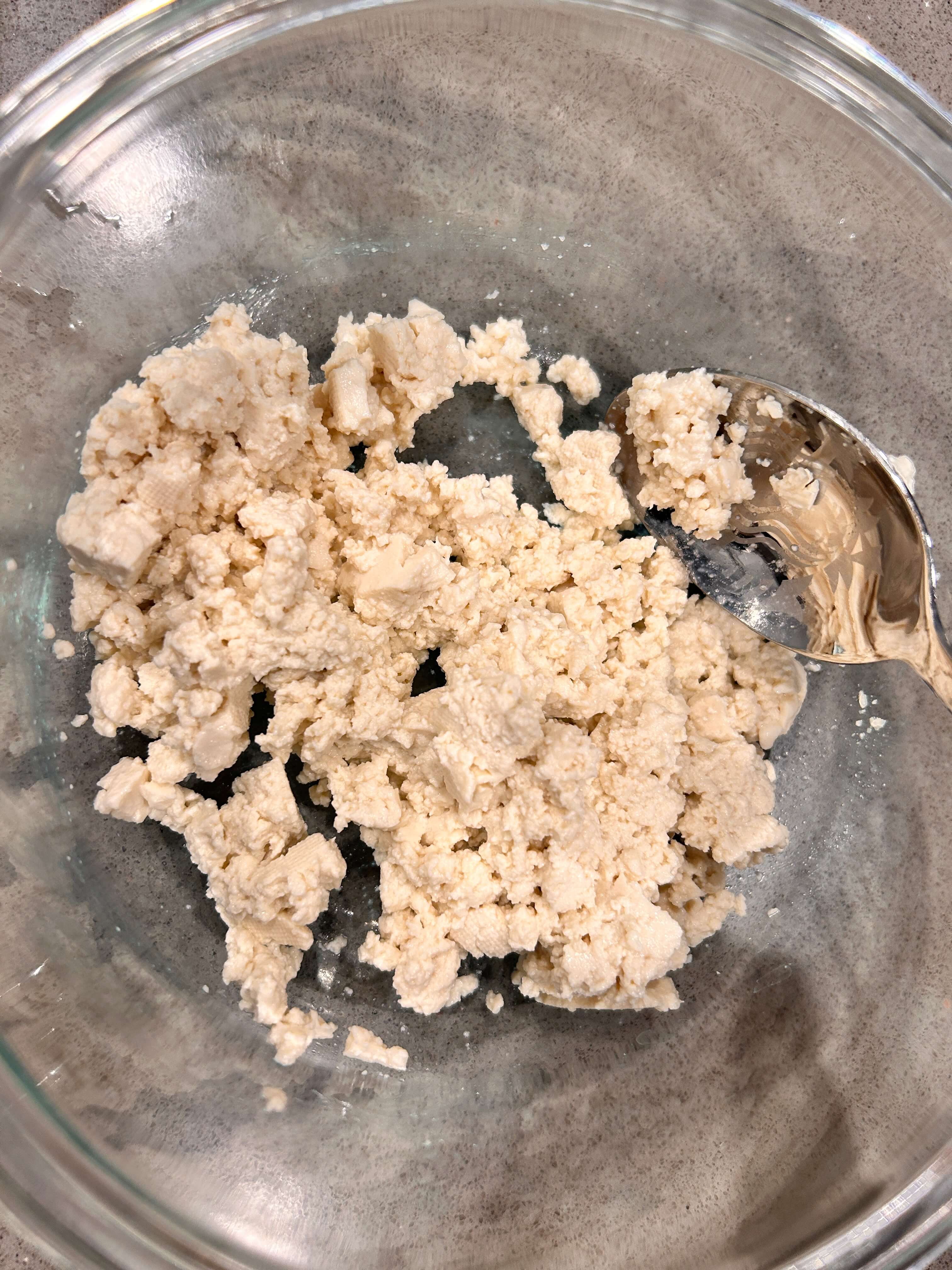 1. 그릇에 두부를 으깨줍니다.