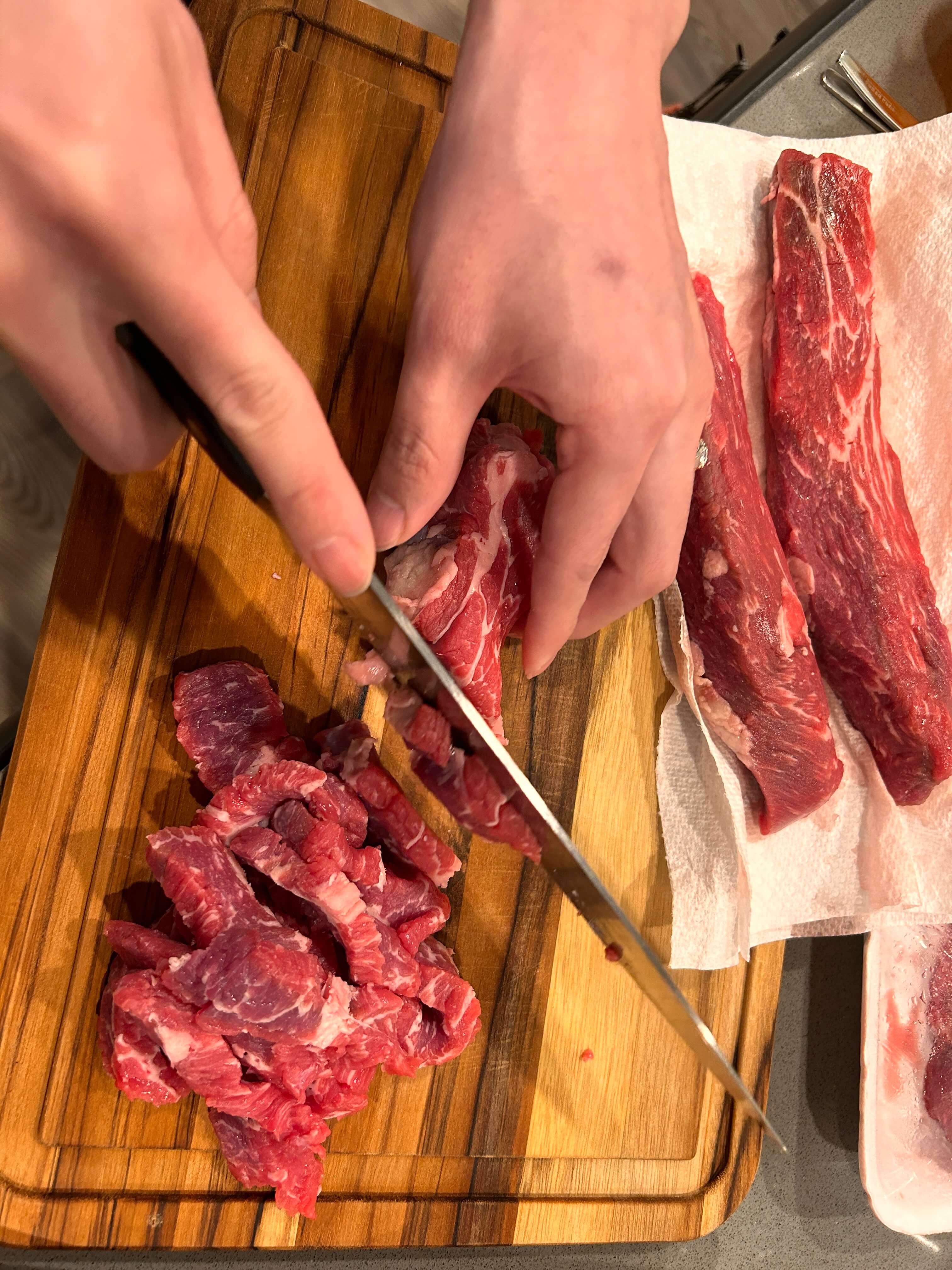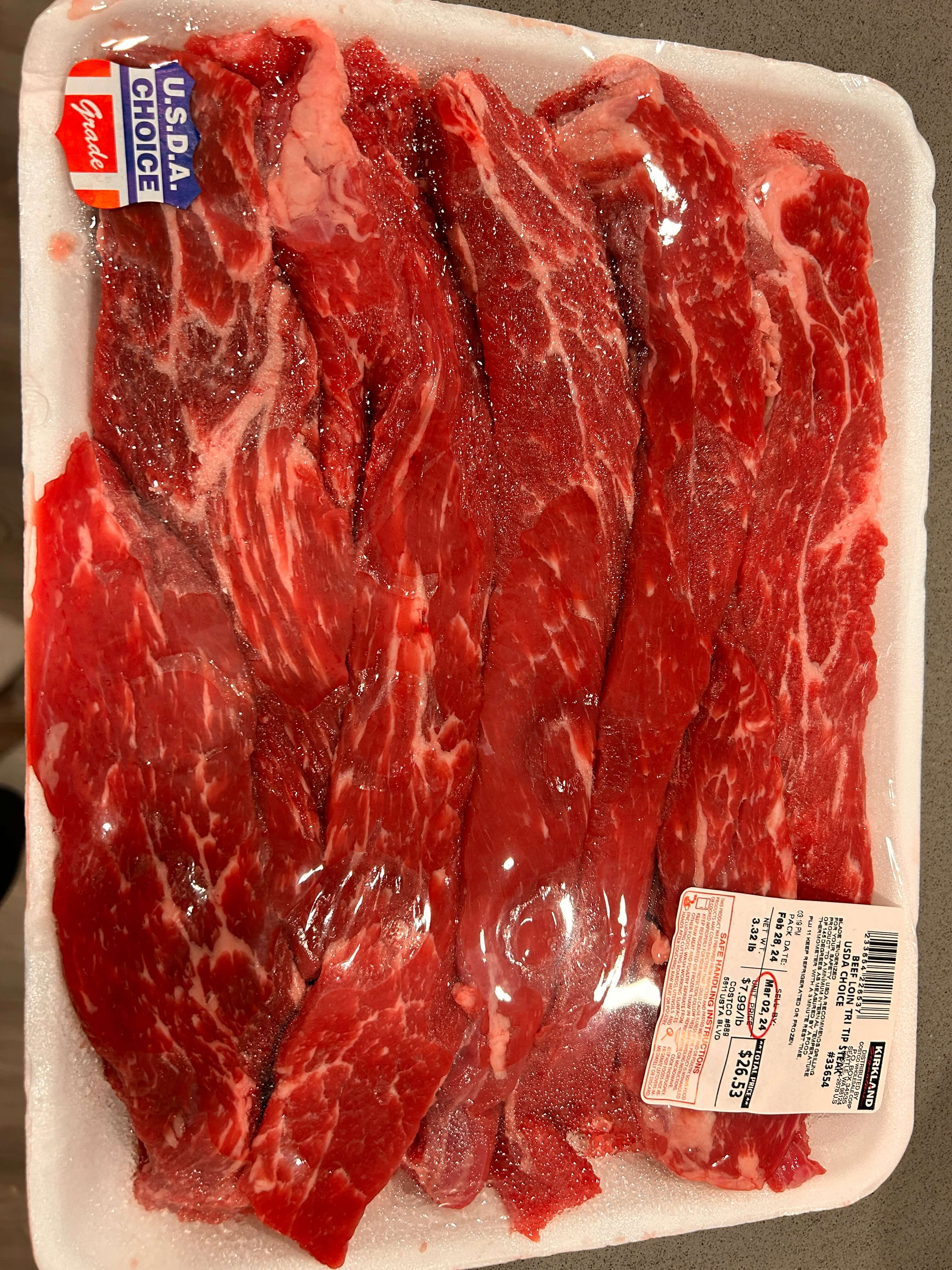 1. 코스트코에서 beef loin tri tip 한팩을 사 와 구워 먹기 좋은 크기로 손질해 줍니다.