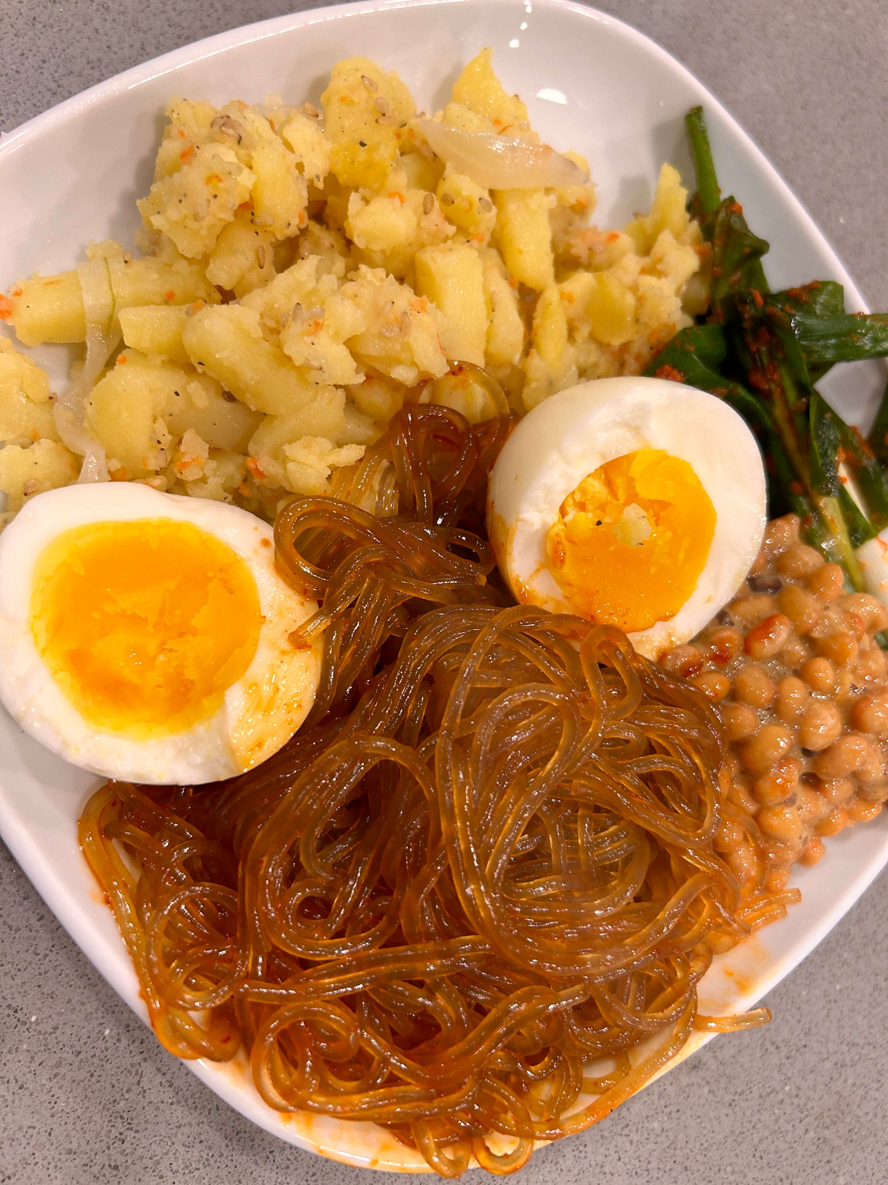 라면사리가 있다면 시중에 파는 팔도비빔면처럼 드실 수 있고, 사진처럼 당면만 삶아서 팔도비빔당면을 해 드시는 것도 추천드립니다.