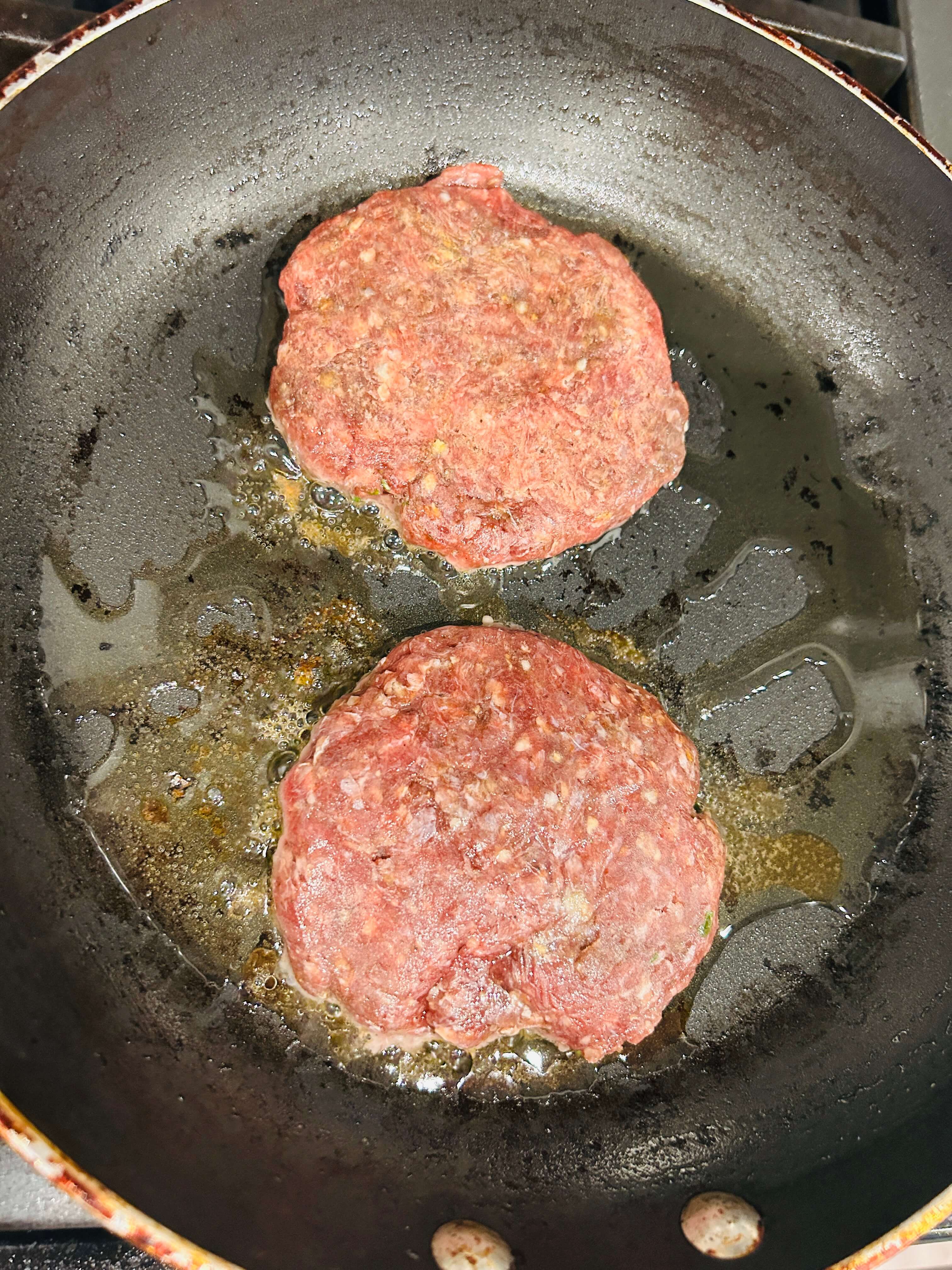 6. 소고기 햄버거 패티도 버터에 구워줍니다.